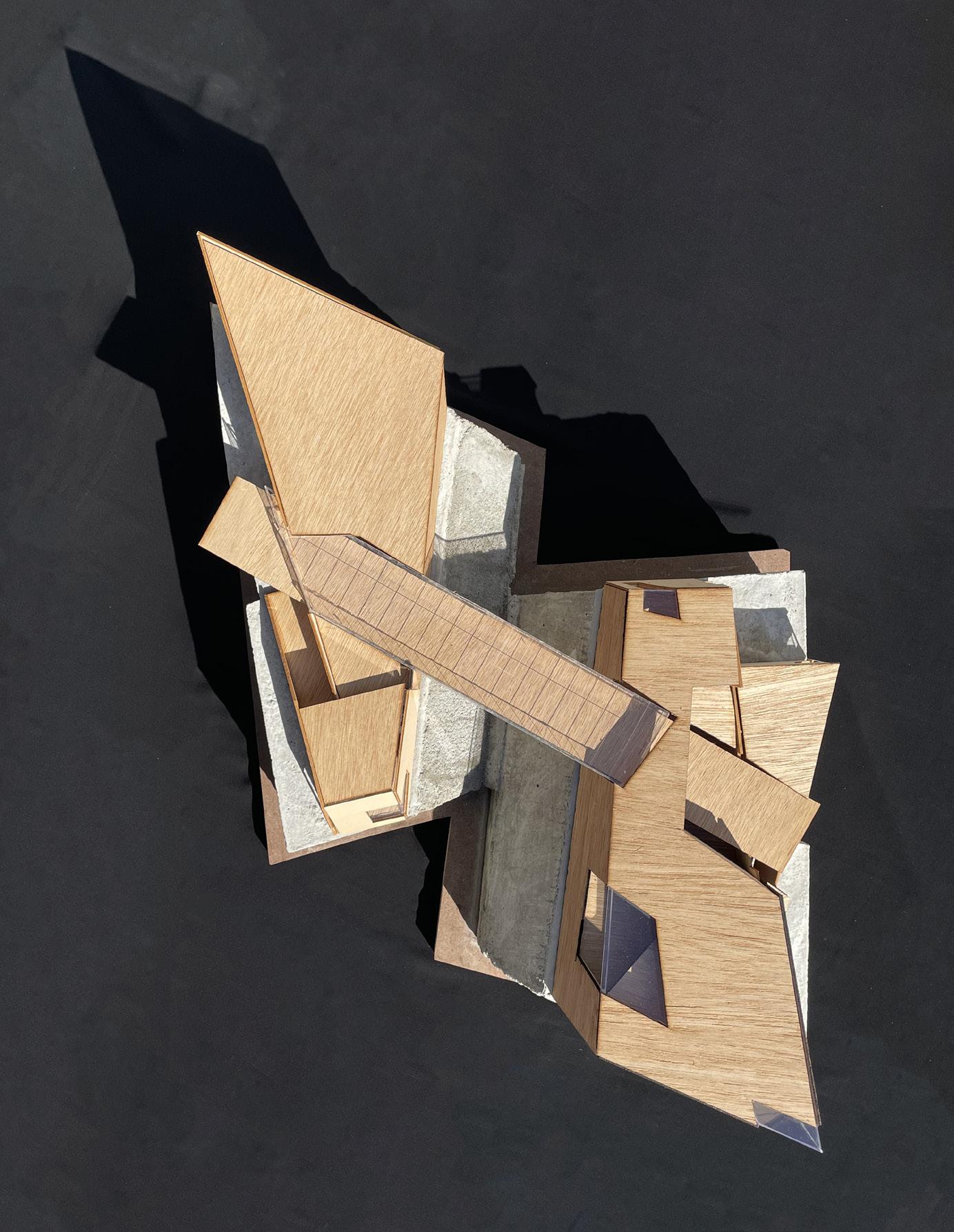 Located in Florida, this Trump Museum’s design reflects the division Americans felt under Trump’s presidency. The separated forms model the prejudice against the Muslim community when Trump’s Muslim ban was in effect. Trump’s ‘black and white’ notion of where terrorism comes from formed these two different shapes that only connect through the glass bridge running over the road. The bridge reflects that even if external forces create divisions- inevitably, people will interact with each other and a Muslim ban won’t prevent that.