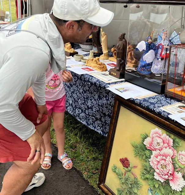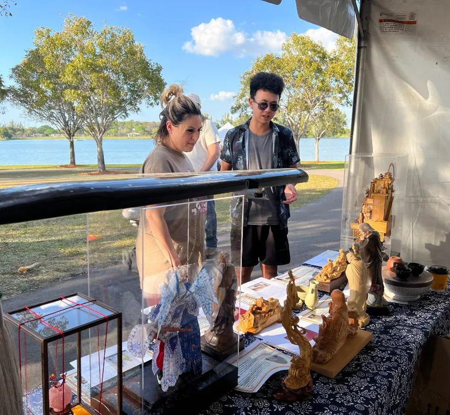 而在美东时间2023年3月4日,美 国迈阿密亚洲文化节的会场里,一家展 台的藏品吸引了众多美国民众的围观。 (供稿,供图:严安澜)