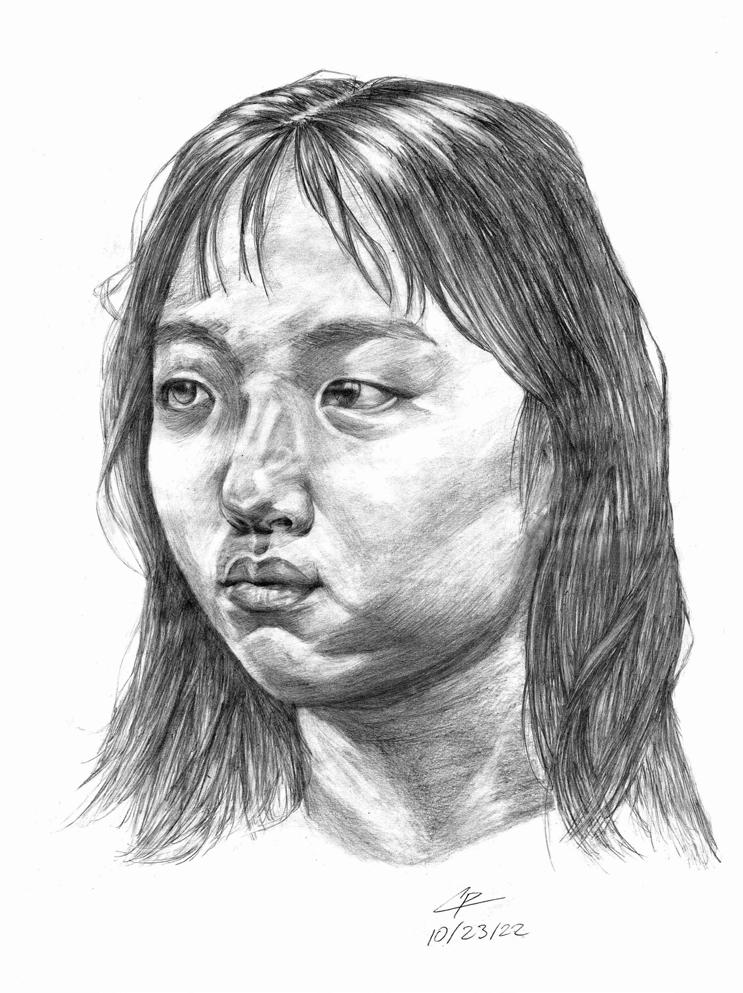14歲的陳麗婭(Leah Chen) 素描頭像作品[新媽 媽](Newcoming Mother)在2023全美初高中藝術 大賽獲銀鑰匙獎,該大賽獲得1銀1榮譽獎。