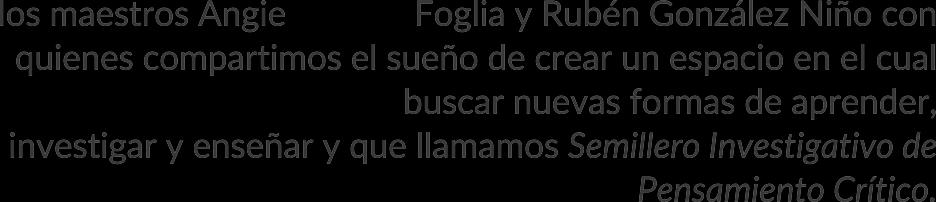El semillero de pensamiento crítico en el que estuve durante el 2021, es algo que estoy casi seguro, me va a servir para toda la vida. Nos enseñó a pensar, analizar y ver de forma crítica toda la información que obteníamos de redes sociales,entendíquenotodoloquesale en televisión (canales como RCN o Caracol) o en redes sociales es real. Entendí que debía realizar un balance y tomar una decisión en vez de dejarme llevar por simples opiniones. Entendí que la información no se debe creer o refutar sólo por quien las promueve sino por las evidencias que se presenten, entendí que el mundo y, personas que piensen críticamente (es decir que piensen responsable, racional y, sobre todo, objetivamente), por lo que es una partefundamentalenlavida.