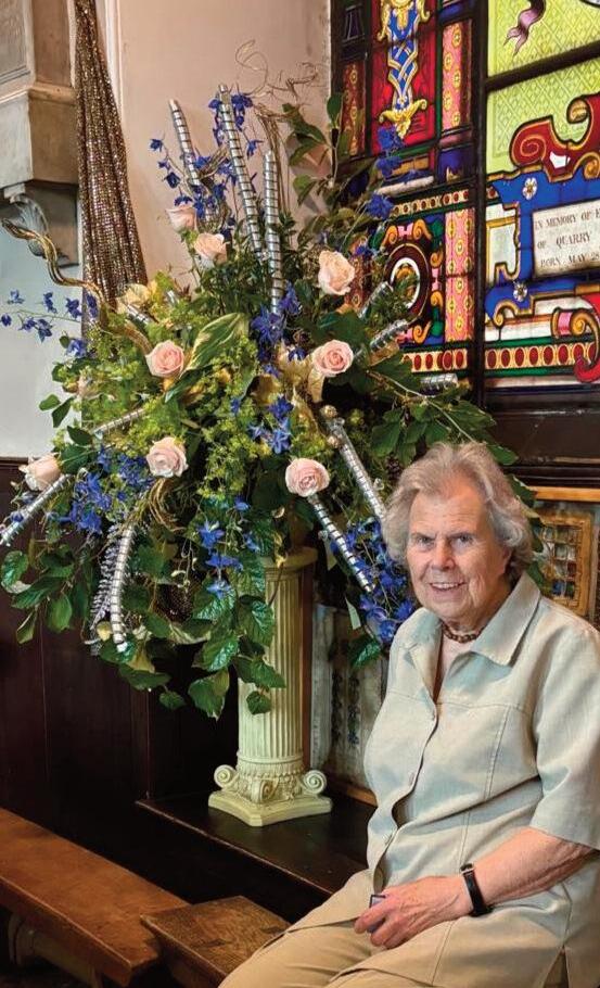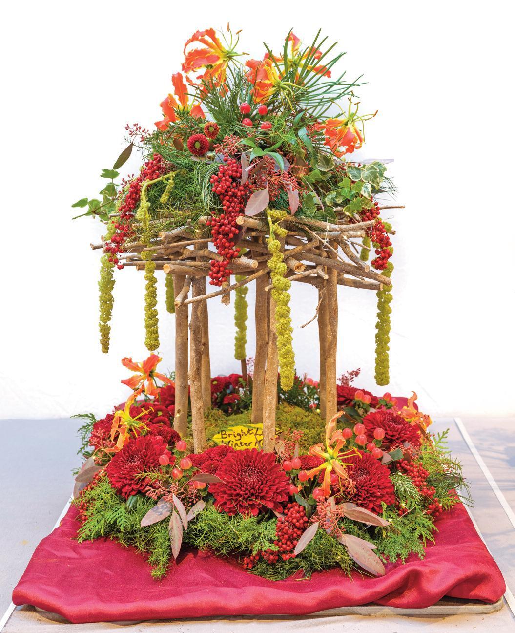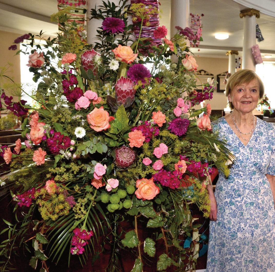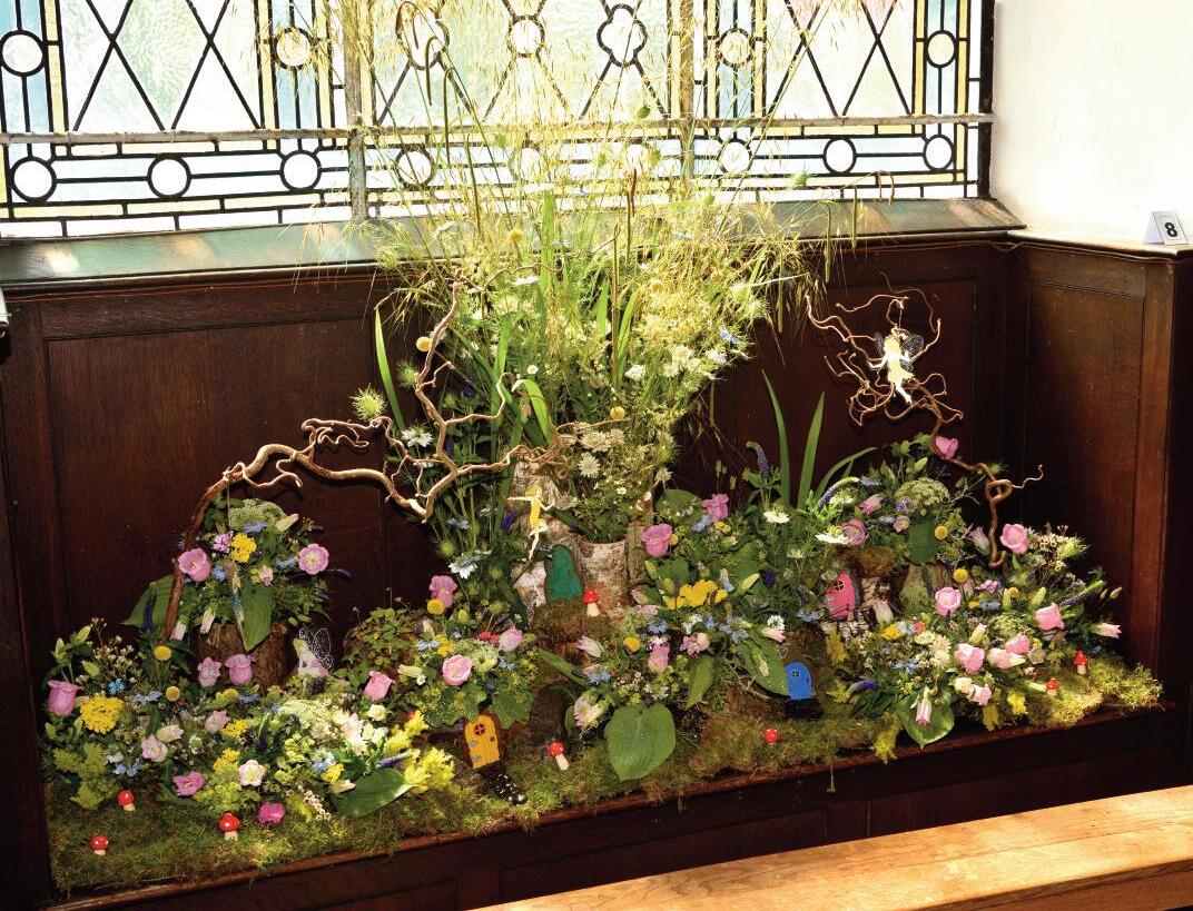 Standout displays included a pedestal arrangement by Debbie Wellington in memory of Percy and Connie Thrower, a memorial tribute by Lynda McCormack in the Military Chapel, a fairyland window by Hannah Edwards with help from her daughters Rosie and Molly, and two fur ther pedestal arrangements by long-serving club members Thelma Hall and Anne Flint Jane Williams (Chair) said it was a truly fabulous weekend of flowers. She thanked all who attended and sponsors J Van VLIET, Birmingham for supplying such high-quality blooms and making the festival possible