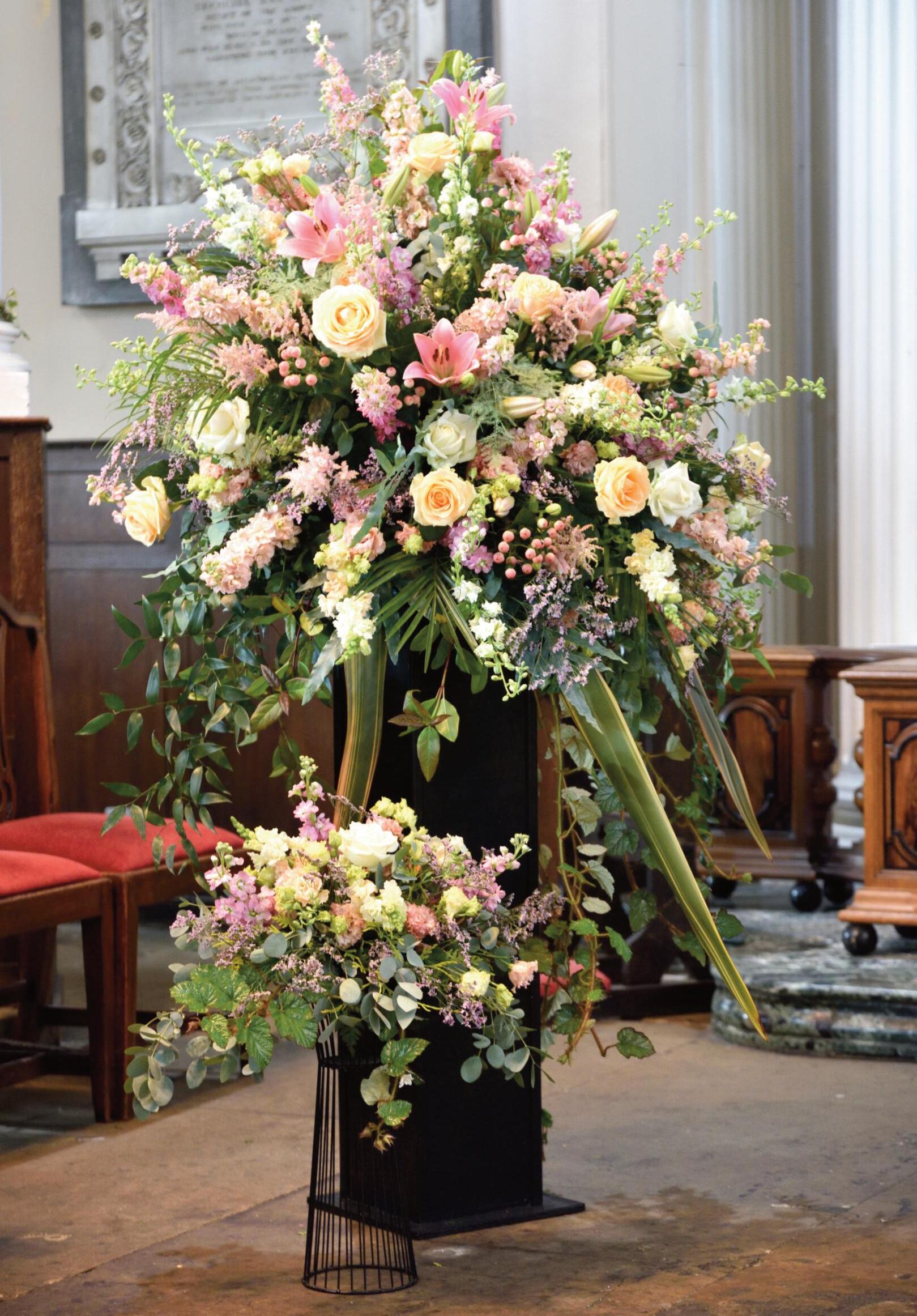 RiGht Pedestal by Debbie Wellington in memory of Percy and Connie Thrower Percy was one of our founder members and Connie was very involved with Shrewsbury Flower Club