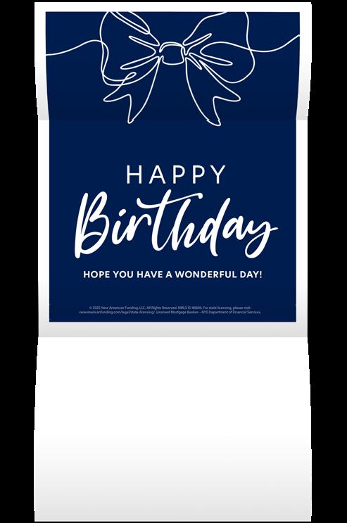 Personalized co-branded greeting cards sent to clients for years after a loan closes on birthdays and loan anniversaries.