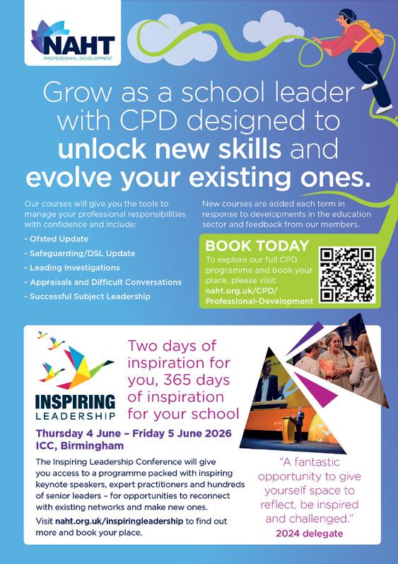 • Instant access to advice: As a member, you have access to expert advice whenever you need it. Whether you have questions about your career or need guidance on schoolrelated matters, NAHT is there to support you