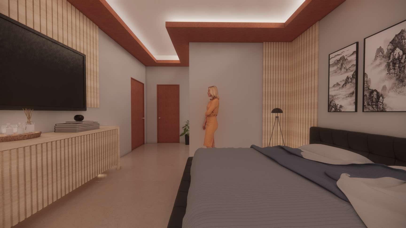 Minimalist room with a touch of wood which makes the atmosphere of the room warmer, this warm nuance is expected to provide peace for guests who come