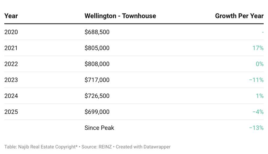 Townhouse:aredownaround-13%from peakwithlesscapitalgrowthduringperiods ofgrowth.