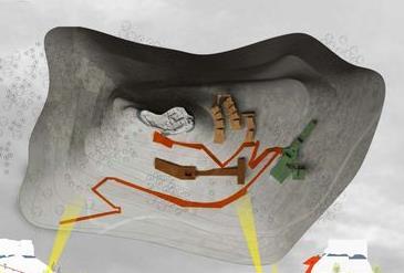 3. Se crea un eje articular entre el edificio principal y los alojamientos