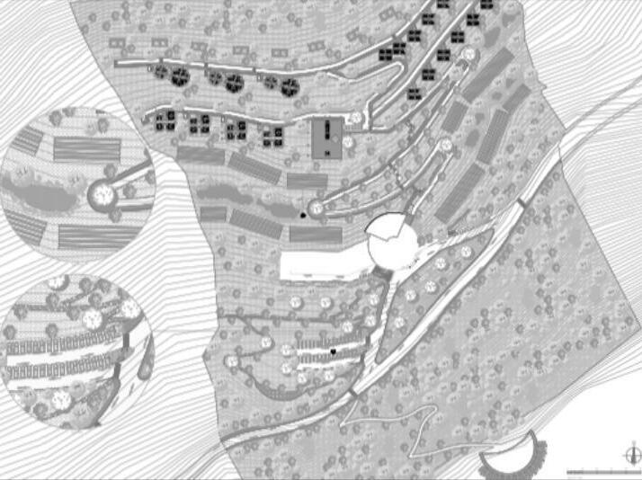 8. Implementación de huemedales al final de cada curva de nivel con el fin de llevar las corrientias a un punto estratégico complementando el diseño de los huertos ecológicos