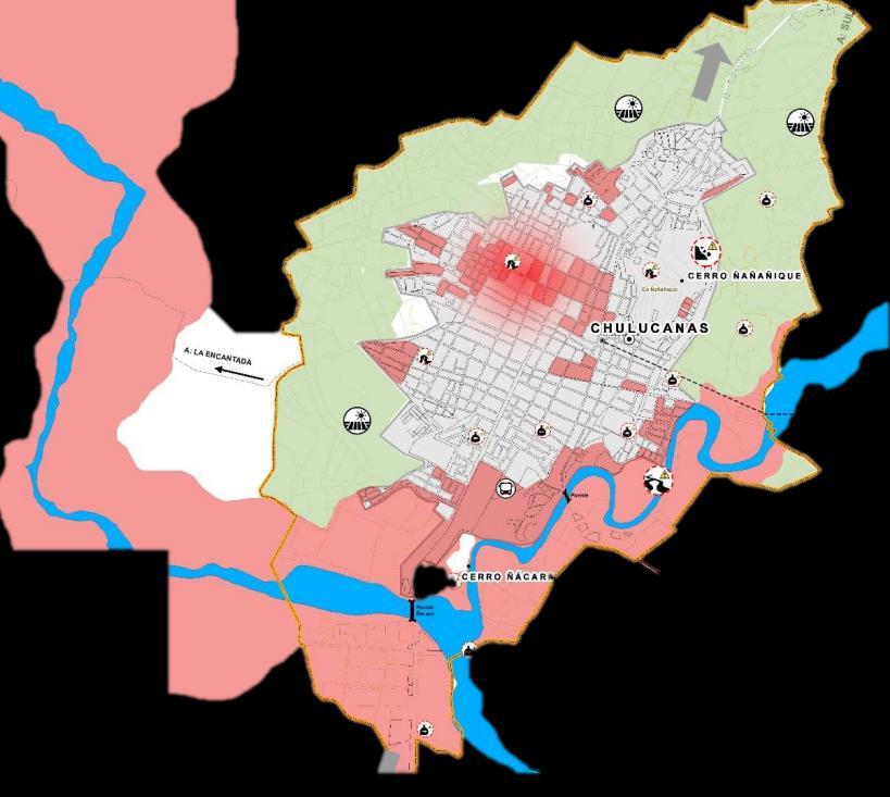 CHULUCANAS UBICACIÓN LOCALIZACIÓNY2 Distrito ChulucanasdeLaEncatada Departamento de Piura Perú UBICADO A: 92 msnm ÁREA: 327 km2 PERIMETRO: 2471 15 m DENSIDADPOBLACIONAL: 158 11 Hab / km² NorteDELIMITACION Con el Centro Poblado Ñomala Rinconada y Nueva Esperanza Sur : Con Chulucanas Este Con el Centro Poblado de Yapatera Oeste : Con el Centro Poblado Sausal 01MARCOHISTORICO 02 CONSTRUIDOMARCO1 ABAST. SERVICIOSDE1.1 1.2 1.3 Piura Chulucanas 53 km 1H. 26MIN Estacionamiento de vehículos menores en áreas adyacentes a la vía nacional Tránsito de moto taxis en la vía nacional Distrito de Chulucanas fue fundado el 27 de junio de 1937 La Encantada es conocida por las múltiples historias que son contadas por los pobladores a lo largo de los años EQUIPAMIENTO URBANO LEYENDA OtrosIndustriaEducaciónComercioViviendaViviendausos CRITICASÁREAS LEYENDA Área urbana critica Área criticoSectorescriticaambientalderiesgomuyalto LEYENDA Nueva vía evitamiento Vía arterial Vía VíaCiclovíacolectivapeatonal MOVILIDAD URBANA SECTORES CRITICOS DE RIESGO Descarga y carga de productos en zonas adyacentes a la vía nacional Media Baja El estado de conservación de Chulucanas de viviendas es muy malo a regular No presenta sistemas constructivos no presenta un sistema adecuadoconstructivo 2 PLANO DE CLASIFICACION GENERAL DEL USO DE SUELOS LEYENDA Área urbana Área no urbana CONFLICTO VIAL2.1 LEYENDA Sectores críticos de riesgo + Conflicto vial remodelación de masas Botadero informal de residuos Zona en peligro por avulsión ESCENARIO TENDENCIAL3 ASPECTO SOCIO4 Mapa sectorizaciónde LEYENDA Sector Urbano 01 Sector Urbano 02 Sector Urbano 03 Sector Urbano 04 Sector Urbano 05 Sector Urbano 06Sectores PavimentadasUrbanos LEYENDA 50.00%50.01 75.00% HidrológicoMapa LEYENDA DE COBERTURA DE AGUA Ámbito de intervención Canal de irritación Redes de Agua LEYENDA Con cobertura Sin cobertura 5 03 MARCO NATURAL 1 ASOLEAMIENTO VELOCIDAD DE VIENTOS TOPOGRAFÍA CLIMATOLOGIA ✓ Zona andina subtropical, tiene un clima seco y fresco durante la mayor época del año ✓ Veranos calurosos ✓ Temperatura constante templada durante casi todo el año ✓ Inviernos templados, no tienen cambios bruscos ✓ Entre enero y septiembre la encantada tiene su temperatura entre 16°C hasta los 25°C ✓ Diciember y Abril 24 C a 32 C Temperaturas Máximas ROSA DE VIENTOS 2 Presenta una topografía poco variada y rocosa, existen terrenos planos, con algunas pendientes, normalmente practican la agricultura en extensas áreas de tierra F O D A ❑ Calidad de diseño y prestigio internacional de la cerámica de Chulucanas ❑ Existencia de áreas agro urbanas que pueden permitir el crecimiento de la ciudad ❑ Existencia de atractivos naturales e histórico culturales en el distrito y alrededores ❑ Demanda de productos agropecuarios con mercado asegurado a nivel regional y nacional ❑ Demanda de productos y servicios comerciales ❑ Existencia de áreas naturales protegidas ❑ Existencia de programas para impulsar al sector ❑ Existencia de intermediarios que generan bajos ingresos de los artesanos ❑ Desarrollo industrial bajo incipiente y disperso, con desarrollo informal de fabricación artesana de ladrillos de arcilla que genera impactos ambientales ❑ Infraestructura vial el mal estado, ocasiona congestión vehicular y difícil acceso a zonas de gran importancia, Cambio climático que alteran el medio ambiente, los procesos productivos y generan daños a la infraestructura ❑ Existencia de tráfico de terrenos en áreas de expansión urbana TRADICION COSTUMBRESY Temporada alta de turistas, es en verano 2 04 MARCO CULTURAL final_de_centro_de_investigacionhttps://issuu.com/ander_ray/docs/entrega_ CULTURA COSTUMBRESY Un lugar lleno de leyendas y ceramistas, con herederospobladores de la cultura de los Vicús y Tallan en sus trabajos manifiestan sus tradiciones,costumbres,modo de vida REFERENTES Cerro Verde Mirador CATALAGO DE MATERIALESCONSTRUCTIVOSISTEMA Bambú RamasTroncos Techo dos aguas Rocas Celosía INTERVENCIÓN ENFOQUE ECONOMICO ✓ MEJORAMIENTO DE CICLOVIASVIAS, ✓ EQUIPAMIENTOS PEATONALESPAISAJISTASY ✓ PLANTAS DE RECICLAJE ✓ ENERGIA RENOBABLE (ENERGIASOLAR) ENFOQUE TURISTICO ✓ TURISMO DE AVENTURA ✓ TURISMO RURAL ✓ TURISMO DE NEGOCIOS ENFOQUE URBANISTICO ✓ COMERCIO DENATURALESRECURSOS ✓ COMERCIO GASTRONOMICO ✓ VENTA DE CERAMICATALLERESY ✓ REMODELACION DE HACIENDAS ✓ IMPLEMENTACION DE ZONAS DE ESTANCIA PARA CENTROS ARQUOLOGICOS ENFOQUE CULTURAL