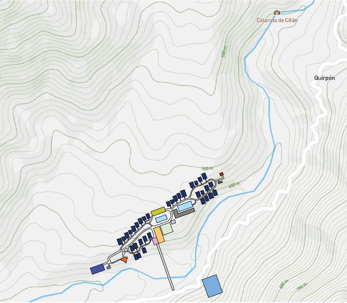Buen manejo del espacio abierto y los elementos que lo conforman (pendiente y camino hacia la catarata de citan)