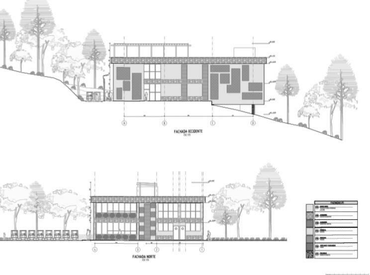 Este edificio se divide en dos zona, en el primer piso encontramos actividades de relajación, en el segundo actividades de recreación pasivas Volumen: Tiene un eje articulador de punto fijo a punto fijo, que distribuye diferentes espacios Volumen: Todos los volúmenes están articulados por un eje que es trazado paralelo a la cota base El volumen occidental se encuentra enterrado en la cota 0 y va aterrazado a los otros dos que están en la cota 4 para generar el menor impacto posible Cota 4 Cota 0 Servicio Administración Auditorio PROGRAMA CABAÑAS: Cabaña 1: Cabaña 2 Se proponen dos tipologías de cabañas, con un espacio articulador, que permite la conexión entre la zona social y la privada Efecto invernadero arquitectura sustentable y bioclimática • Muros de tapia pisada, proporciona calefacción natural en los espacios • Techos verdes para mayor aporte de áreas verdes • Muros trombe para crear calefacción natural aprovechando la radiación solar y creando confort Conclusión Se cumplió con el objetivo de diseñar un eco hotel que además de dar solución a la problemática turística del sector, supliendo la demanda hotelera, implementa técnicas de sostenibilidad y bioclimáticas para optara tener el certificado ECO HOTEL y sirviendo como un elemento icónico para el territorio Cortes Aislamiento para generar privacidad Fitotectura: Se implementación de arborización según las necesidades del espacio,