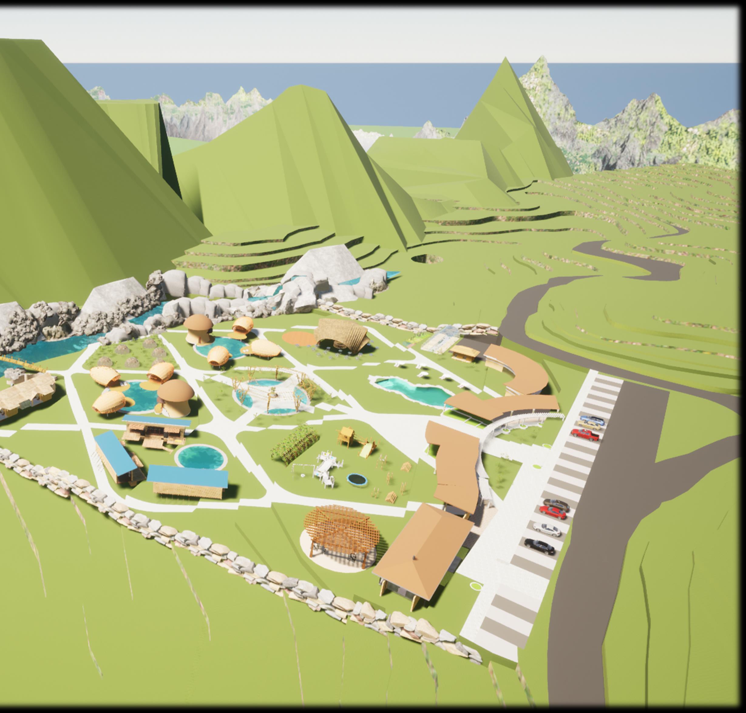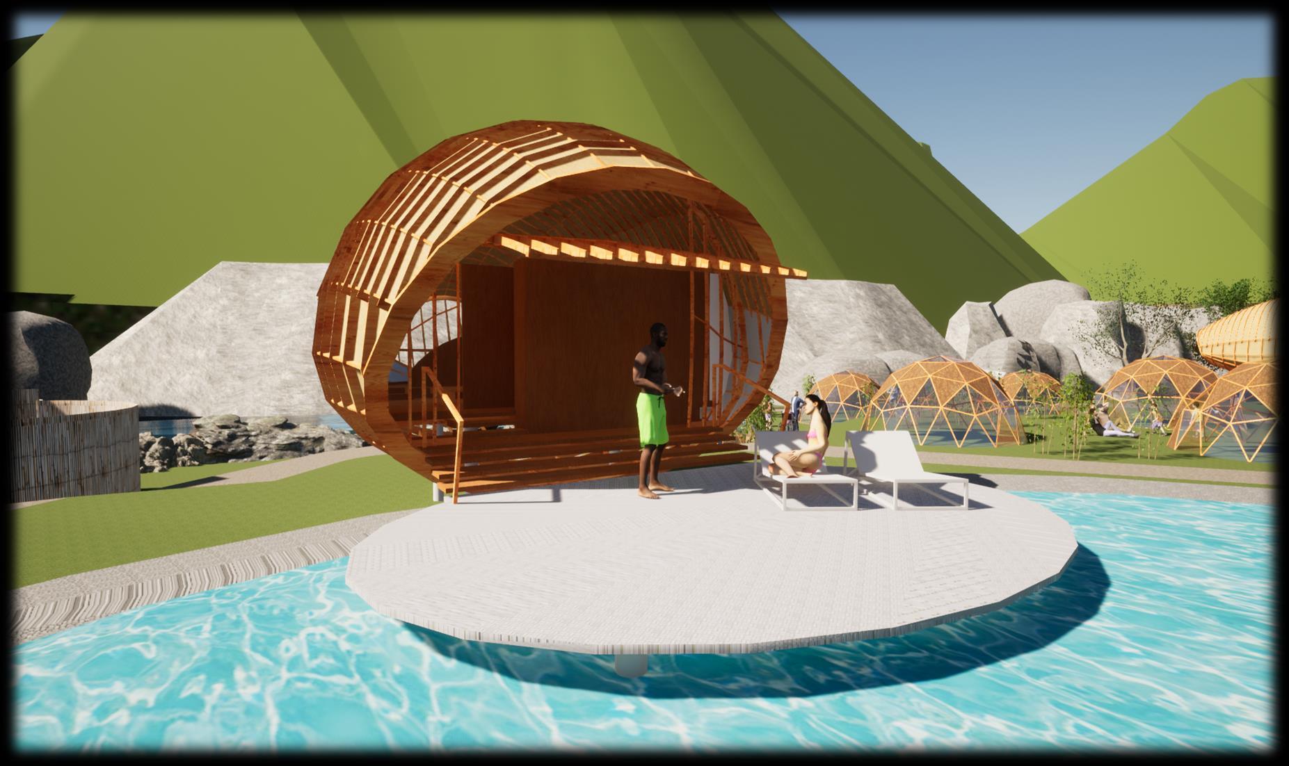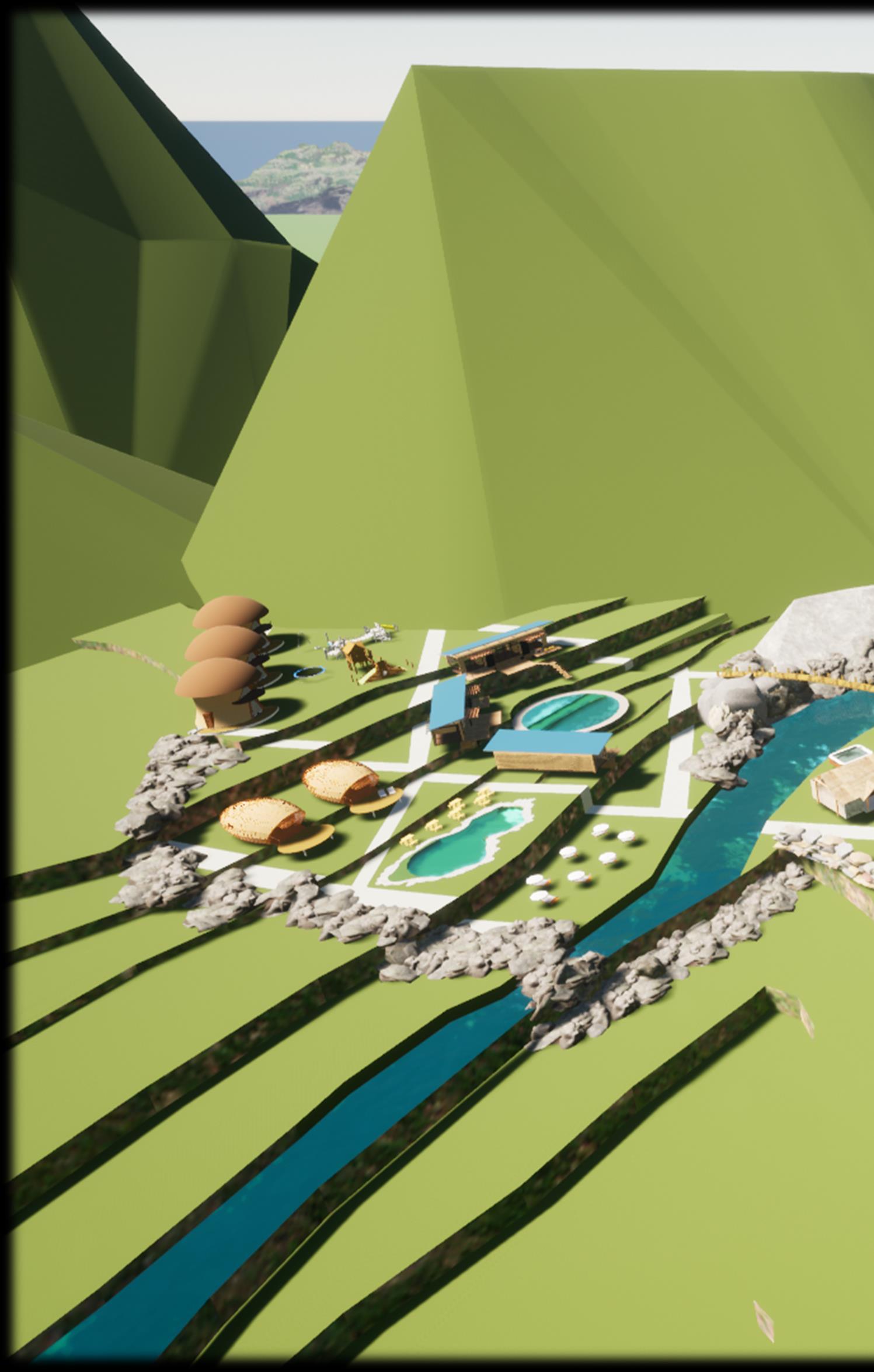 transporte para llegar al destino Poco conocimiento del distrito y sus atractivos Adobe/Piedra/Paja /Madera/Teja 1 Ramifica en el terreno: • Camino • Distribución 2 CORRIENTE DE AGUA Formando: • Espacios • Geometrización Malla Recepción 3 Administración 4 SPA 15 GYM al aire libre 5 Habitaciones 14 Bungalows 19 Habitaciones 17 Bungalows 18