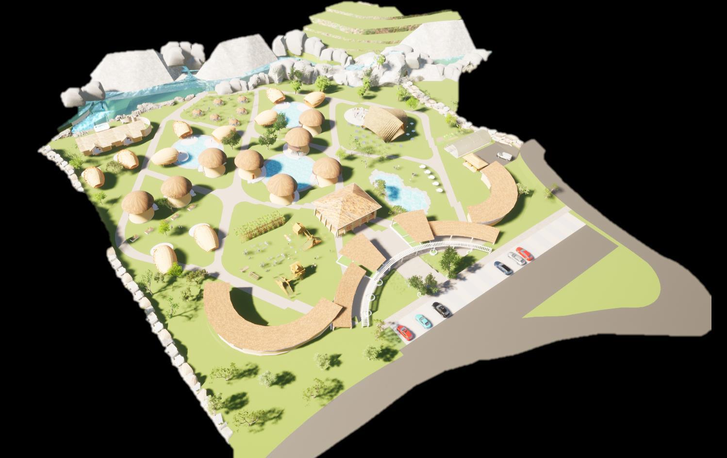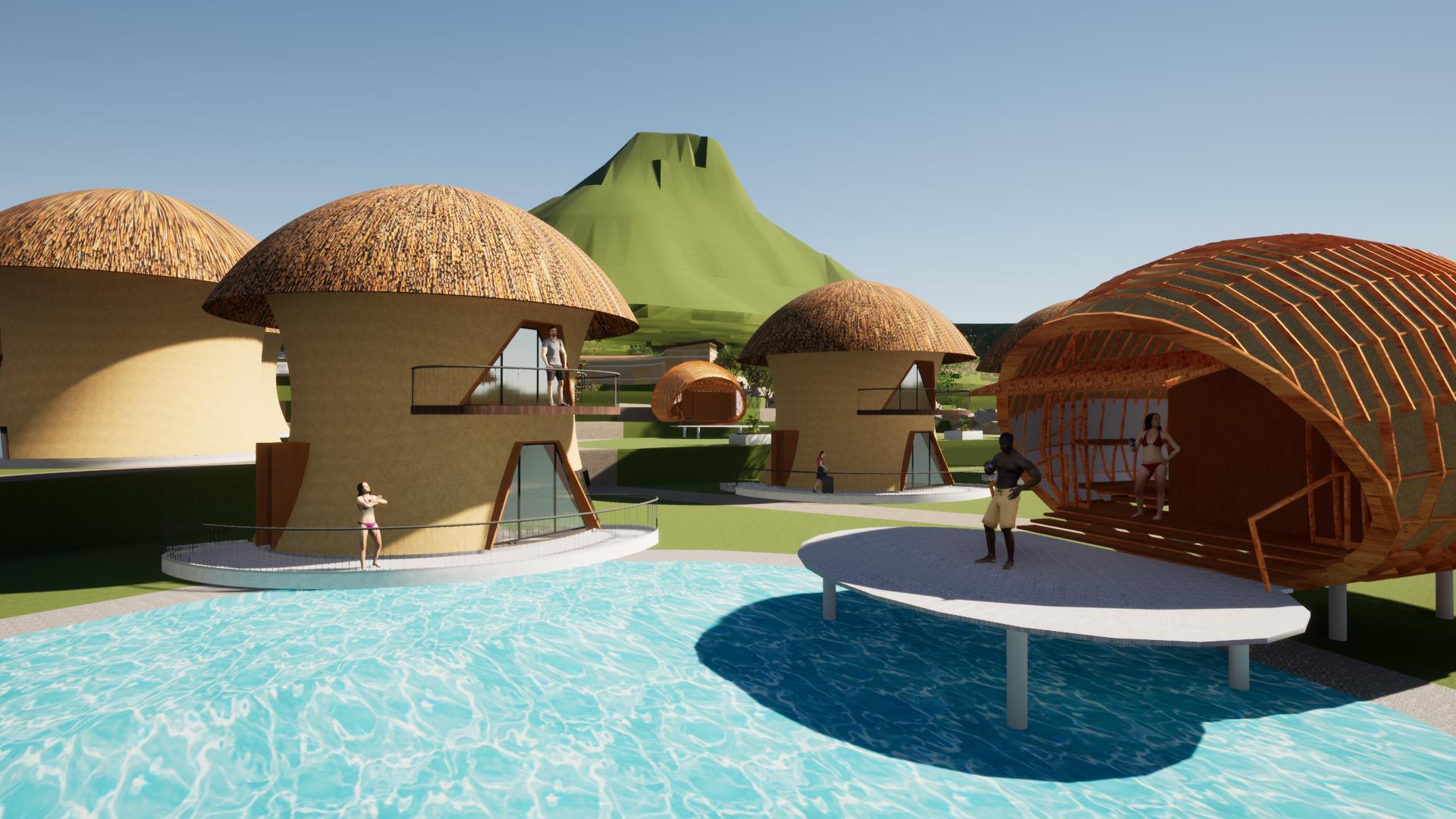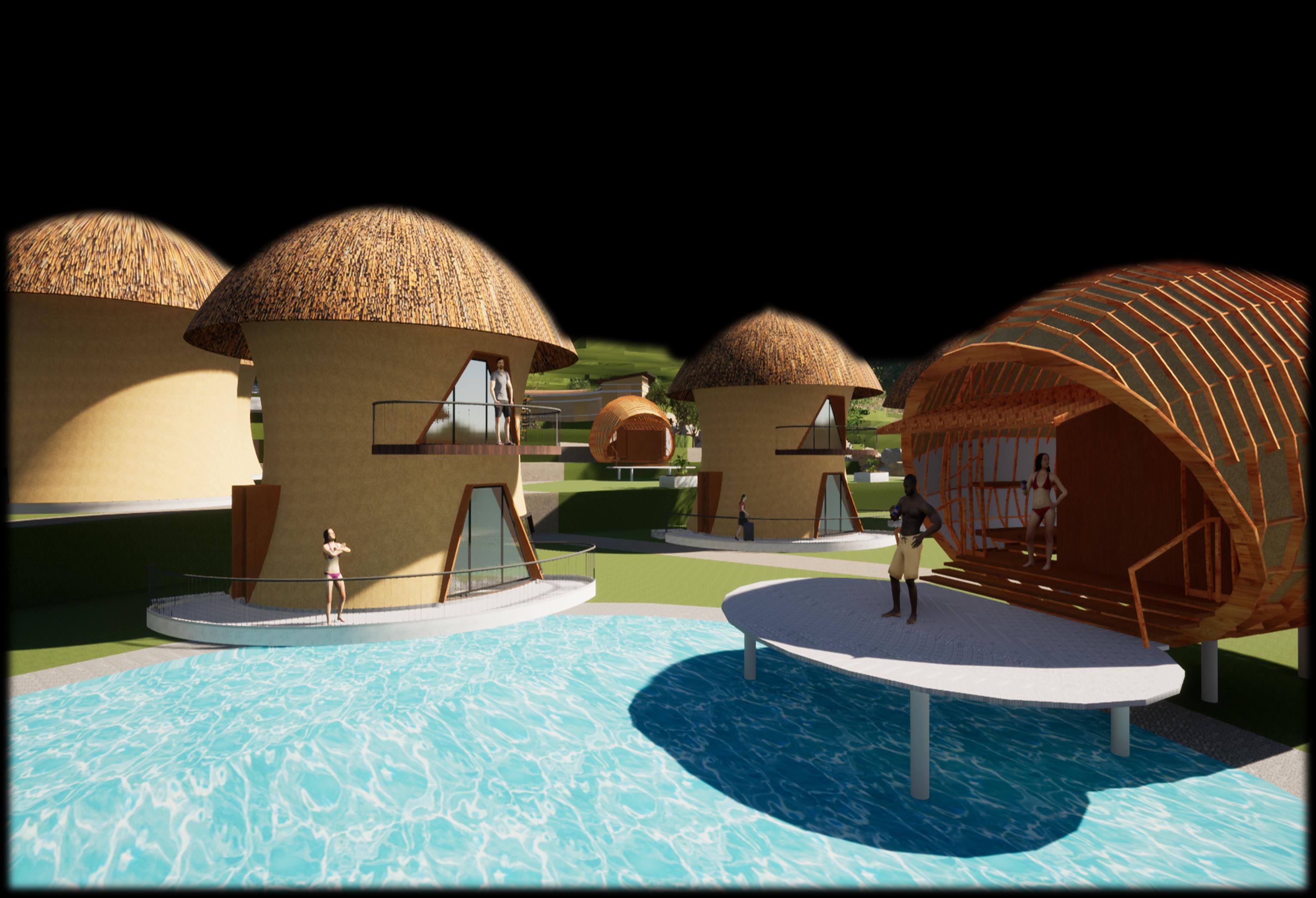 transporte para llegar al destino Poco conocimiento del distrito y sus atractivos Adobe/Piedra/Paja /Madera/Teja 1 Ramifica en el terreno: • Camino • Distribución 2 CORRIENTE DE AGUA Formando: • Espacios • Geometrización Malla Recepción 3 Administración 4 SPA 15 GYM al aire libre 5 Habitaciones 14 Bungalows 19 Habitaciones 17 Bungalows 18
