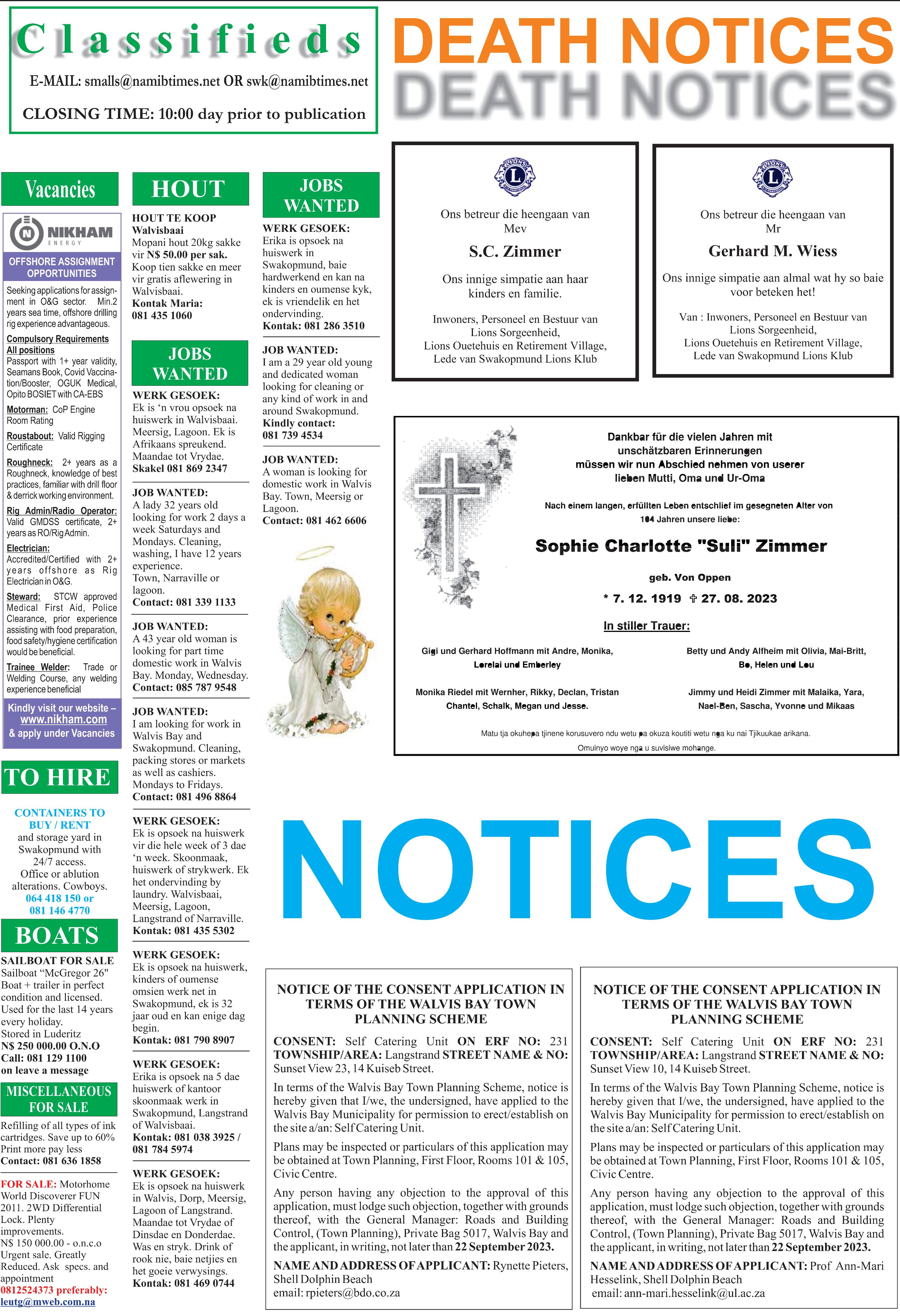 namibtimes Tel: +264 64 - 205854 / +264 64 - 461866 /Fax: +264 64 - 204813 / 064 - 461824 / Website: www.namibtimes.net SERVING THE COASTAL COMMUNITY SINCE 1958 NO 7031 FRIDAY 1 SEPTEMBER 2023 N$6 inside