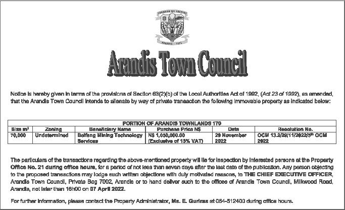Inapressstatementissuedon14March,theExecutiveDirectorinthe MinistryofHomeAffairs,Immigration,SafetyandSecurity,Etienne Maritzsaidtheministryhasbeenmadeawareofinformationonsocial mediastatingthattheministryhasintroducedapolicytoissueNamibiancitizenshipaswellaspermitstoforeignnationalswhopurchase residentialpropertyinthe“PresidentsLinksEstate”atWalvisBay It should be noted and made categorically clear that the Ministry does notfavouranycompany,nordoesitendorseparticularprojects. Maritz said, the Ministry welcomes investment into Namibia, “and will issue qualifying foreign investors with relevant permits in line withournationallawsandproceduresasclearlysetoutintherelevant regulations. The issuance of such Namibian Citizenship as well as Permitsisacquiredinaccordancewiththeeligibilitycriteriasetoutin theConstitutionoftheRepublicofNamibiaandrelevantlegislation. Foreignnationalswishingtoobtaincitizenshiporresidencestatusin Namibia are therefore advised to do so in terms of the Namibian Citizenship Act of 1990 and the Immigration Control Act of 1993, respectively.”