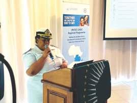 Dr Linda Naidoo the UNODC Coordinator of GenderBasedViolenceProgrammingintheSouthern African Development Community (SADC) region, at the workshop held on Wednesday and Thursday said, “we feel it is very important that gender mainstreaming is institutionalised in every organization.Itisimportantforthecountry,butitis importantfortheinternationalframeworksanditis particularlylookingattheAgenda2030.Lookingat how we achieve the seventeen sustainable development goals and if you look at each one of those sustainable development goals, you find that an element of equality of women need to be investinginthosesustainablegoals.”