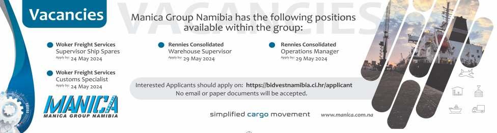 Anypersonhavinganyobjectiontotheapprovalof thisapplication,mustlodgesuchobjection,together with grounds thereof, with the General Manager: Roads and Building Control, (Town Planning), PrivateBag5017,WalvisBayandtheapplicant,in writing,notlaterthan14June2024