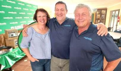 Therewere11prizesforthetopteamsandeveryoneelsegotaNAMIBMILLShamper Closestto thepinwenttoPietvanNiekerkwhileavisitorto theclubWillemSerfonteinwonthelongestdrive. GousietookaJaggieforsneakingalongestdrive prizeintothecompetition.