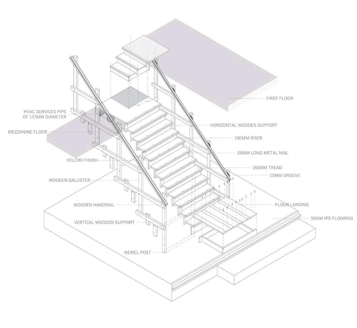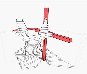 · A FREE-STANDING BIFURCATING DOUBLE SPIRAL STAIR THAT COMBINED THE TRAVEL ROUTES BETWEEN DIFFERENT SPATIAL