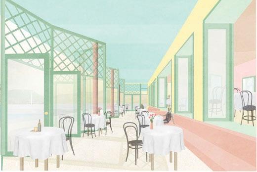 The proposal will substitute the original hotel function. The Hotel faces the lake with a little port and in the summer it households tourists that visit the lake. I worked on the visualizations and the interior features, integrating materials such as marble, terrazzo floors and wood.