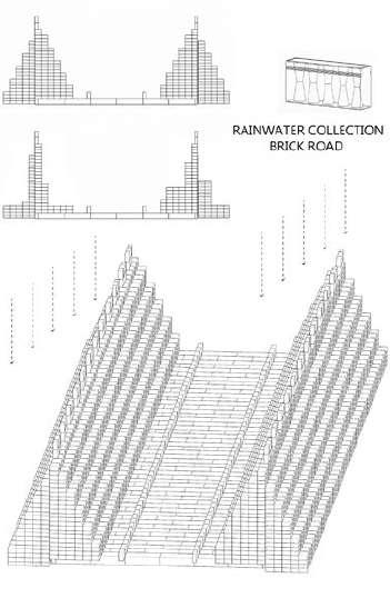 Rainwater collection road needs as many bricks exposed to the rain as possible, and be stable as possible because after filled with water the bricks can be heavy, so its cross section looks like a triangle.