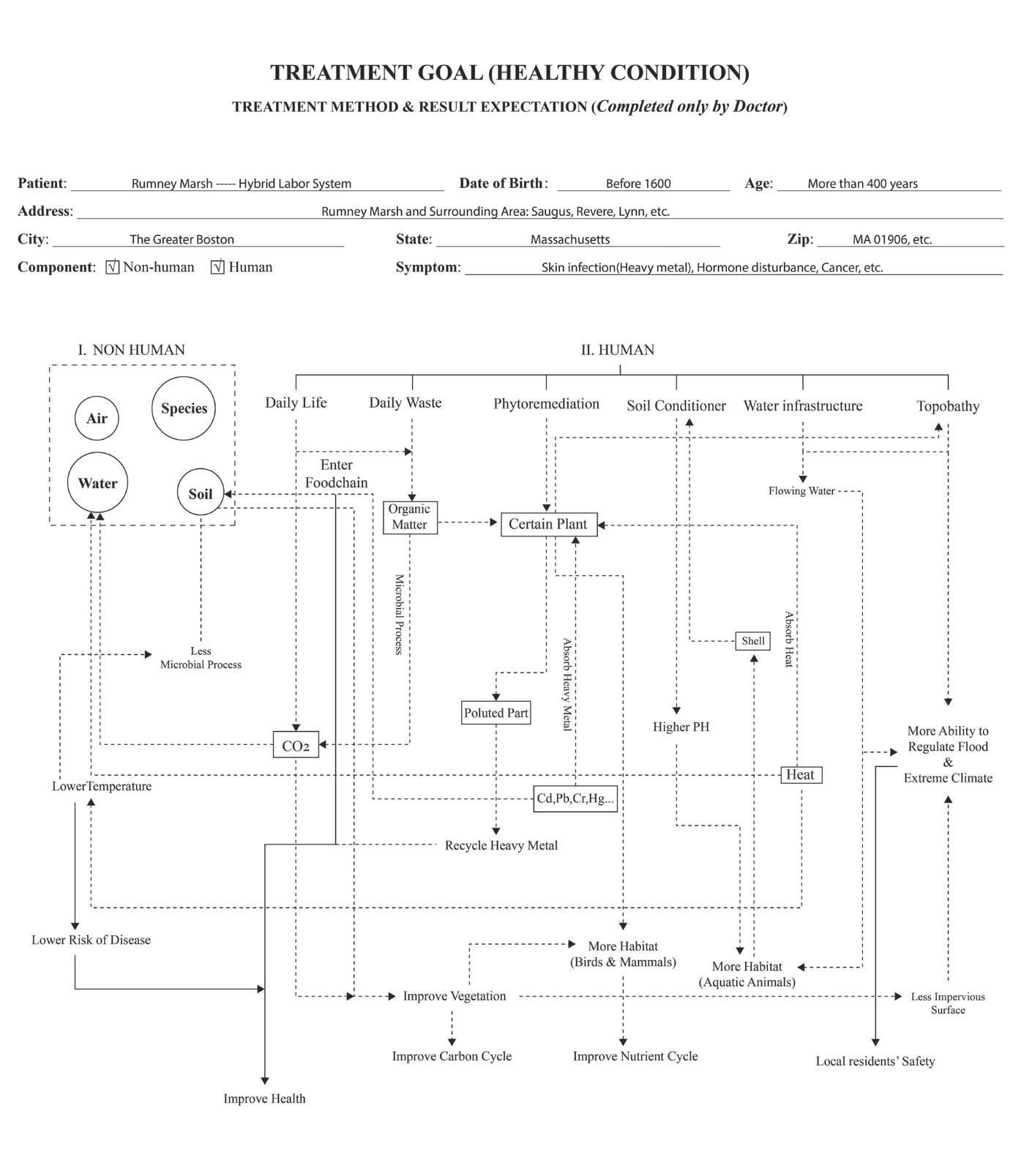 This file contains an introduction and detailed work injury evaluation, a general solution booklet for all such cases, and a specific treatment plan to test the general solution on the Rumney Marsh Hybrid Labor case’s contamination part. The general solution includes medical treatment, work injury lawsuits, public donations, etc. The solution includes medical treatment research and plans of different care in three “treatment centers” requiring both human and non-human workers and taking into consideration the worker’s own self-healing ability.