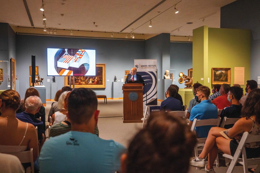 Amb. Weiss leads a lecture in a gallery at the Snite Museum of Art, located on the campus of the University of Notre Dame, on August 23, 2021.