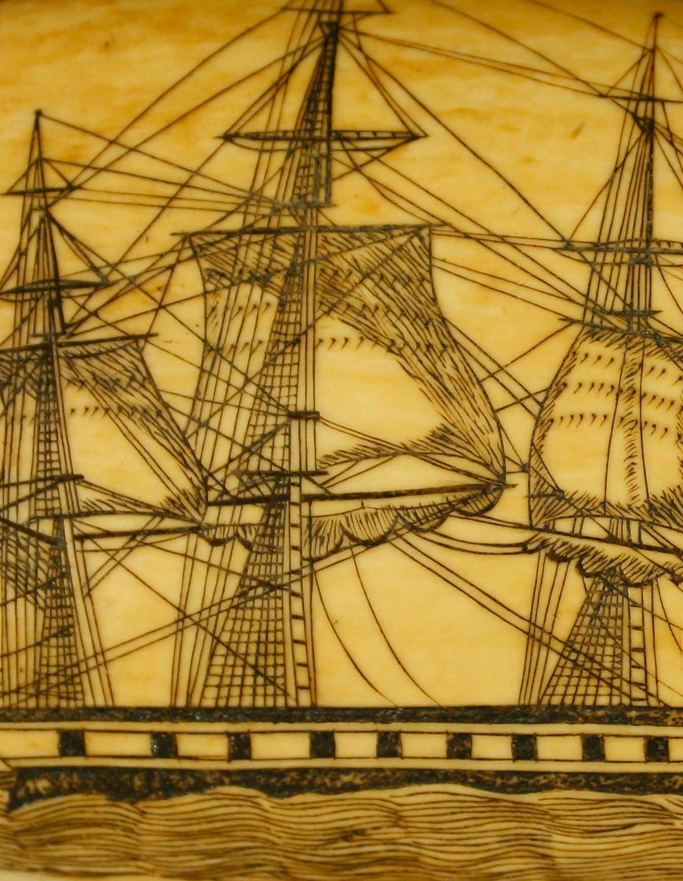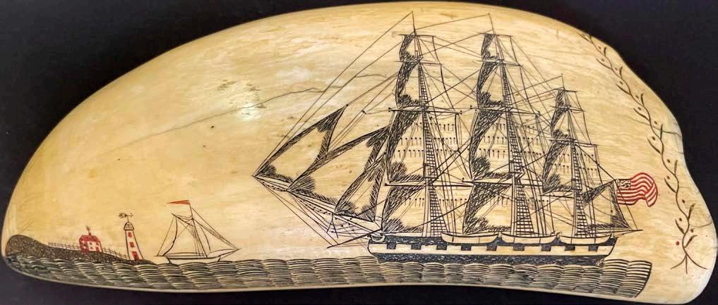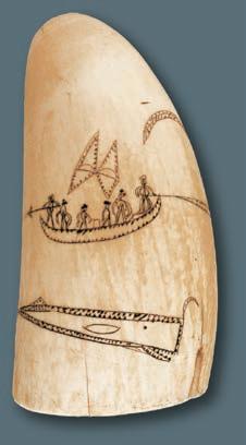 “ CARVED IVORIES, CANES, ORNAMENTED DITTY-BOXES, FANCY BUSKS, ENGRAVED TEETH AND DIPPERS WERE ONLY A FEW OF THE SCRIMSHAW ARTICLES BROUGHT HOME PROUDLY BY THE RETURNING WHALEMEN.”