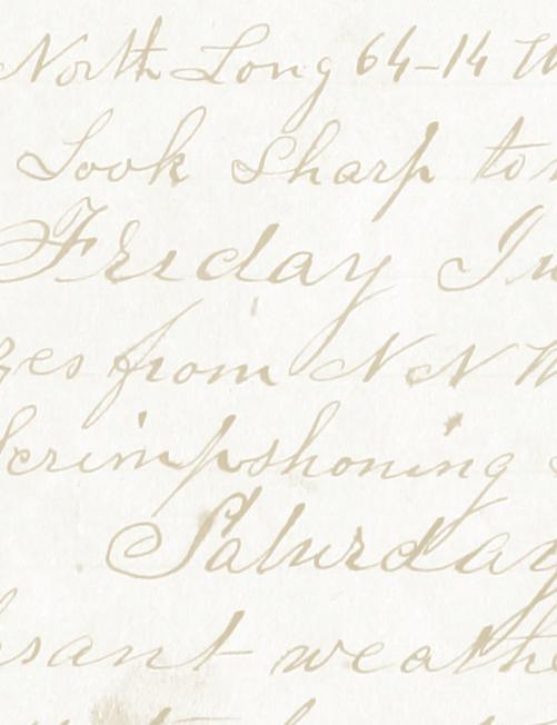 Joseph Ray’s journal entry for July 30, 1858, aboard ship Edward Cary of Nantucket. Logbook, Nantucket Historical Association, Ms. 200, Log 73. Image courtesy of the Nantucket Historical Association.
