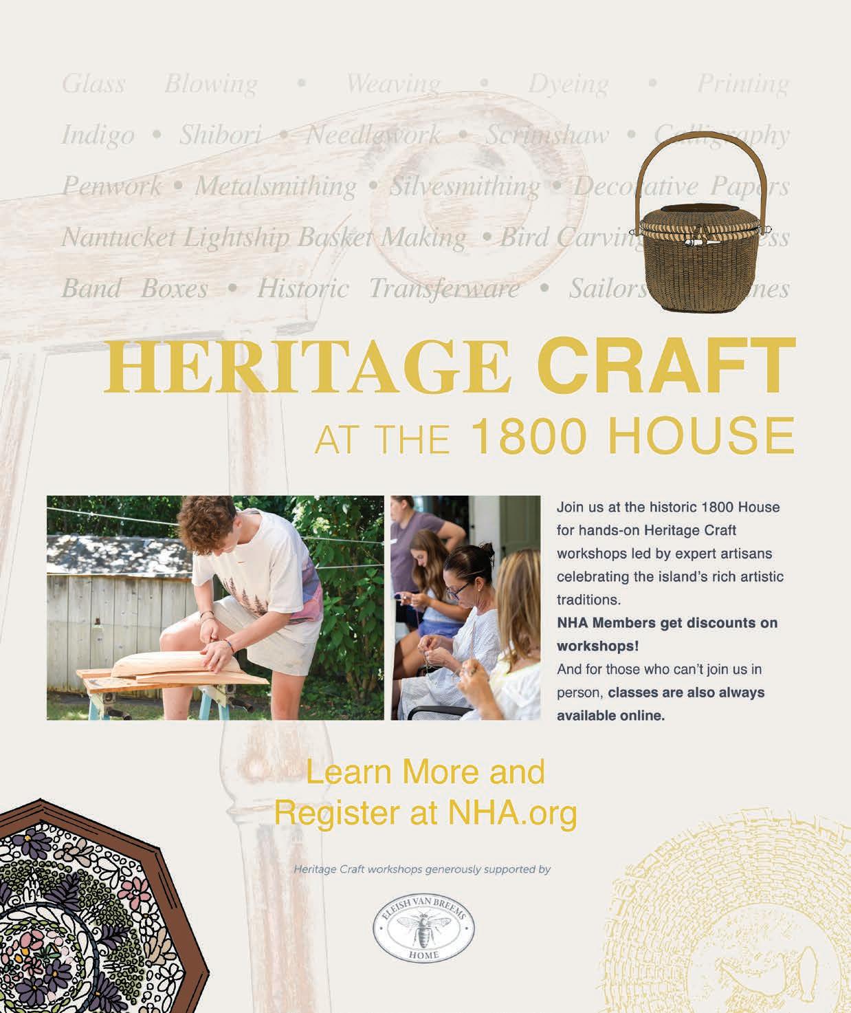 Speaking of creativity, we are excited to share how we are transforming our decorative arts program to reflect a deeper commitment to Heritage Crafts. The NHA’s vision for this programming will be rooted in preserving the practice of heritage crafts specific to the island and beyond. We seek to promote this work through hands-on learning while fostering a community among students and craftsmen. We hope you will join us as we focus on this new initiative — all skill levels are welcome!