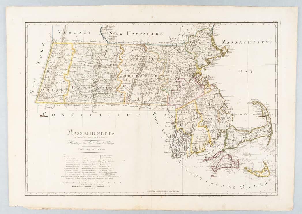 Daniel Friedrich Sotzmann was a German geographer, surveyor, and draftsman as well as one of the most important cartographers of his time. He completed Massachusetts as one of ten maps for an intended atlas to accompany Christoph Daniel Ebeling’s Erdbeschreibung und Geschichte von Amerika. The atlas was never completed, but the project resulted in some of the period’s most accurate and detailed maps of the newly formed United States. In addition to the naming of ponds and beaches, the map includes the Siasconsit Fishing Houses (Fischer Hütten) and Leuchtthurm (Brant Point Lighthouse).
