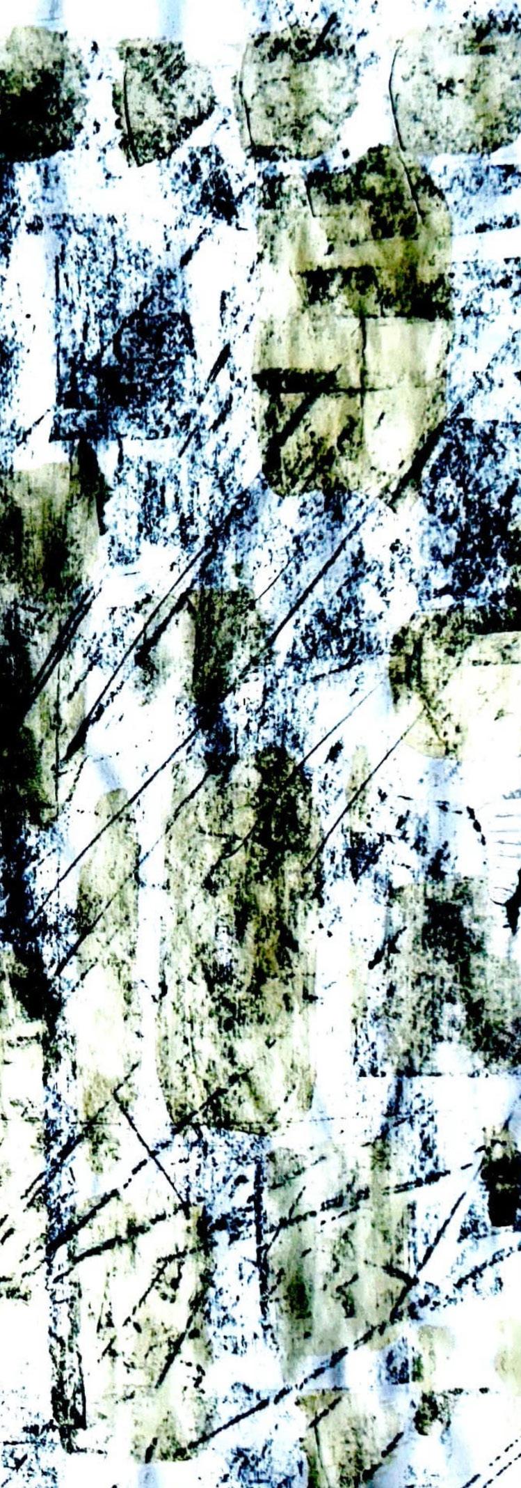 created with charcoal and coffee in response to sound, using movement and layering to replicate intensity and rhythm.