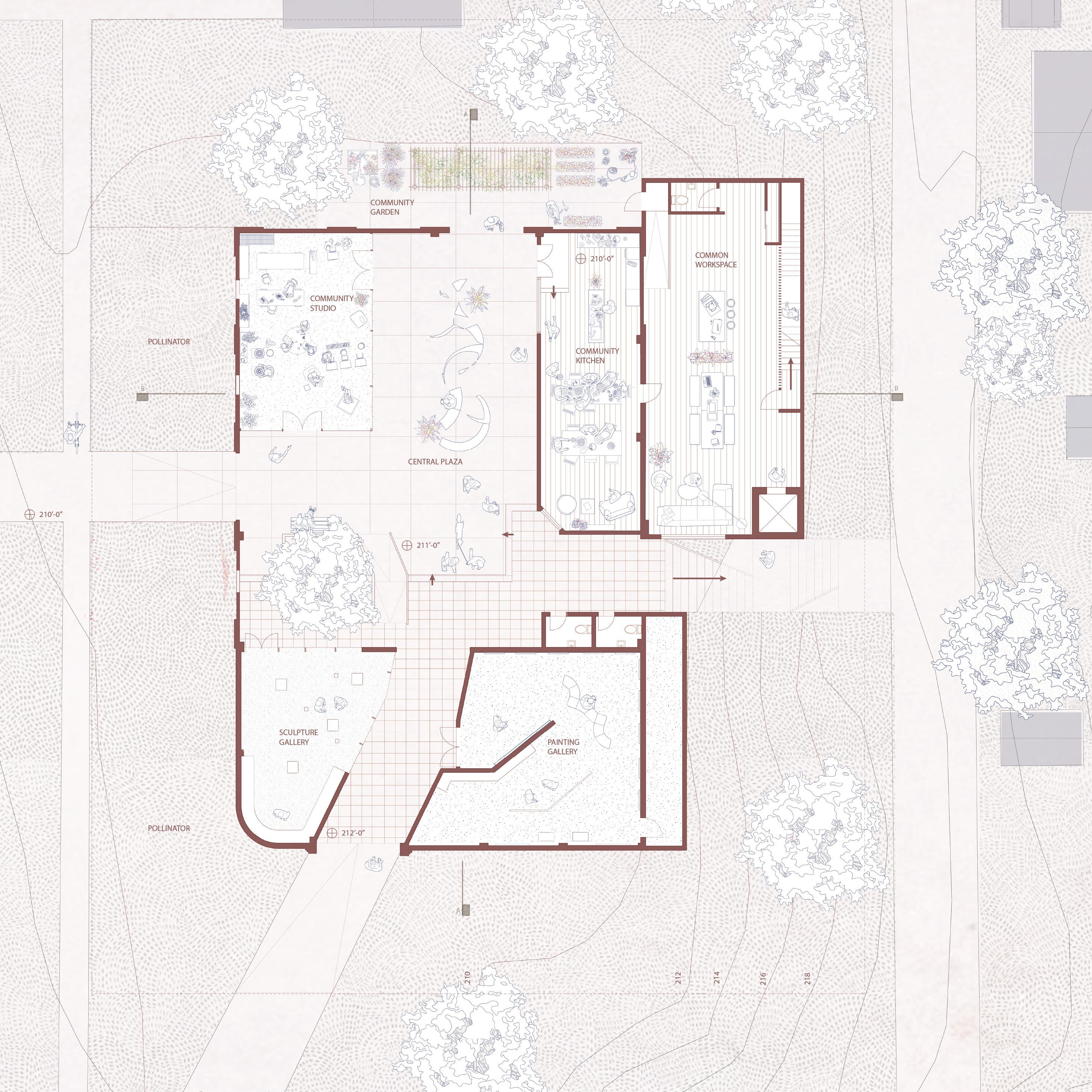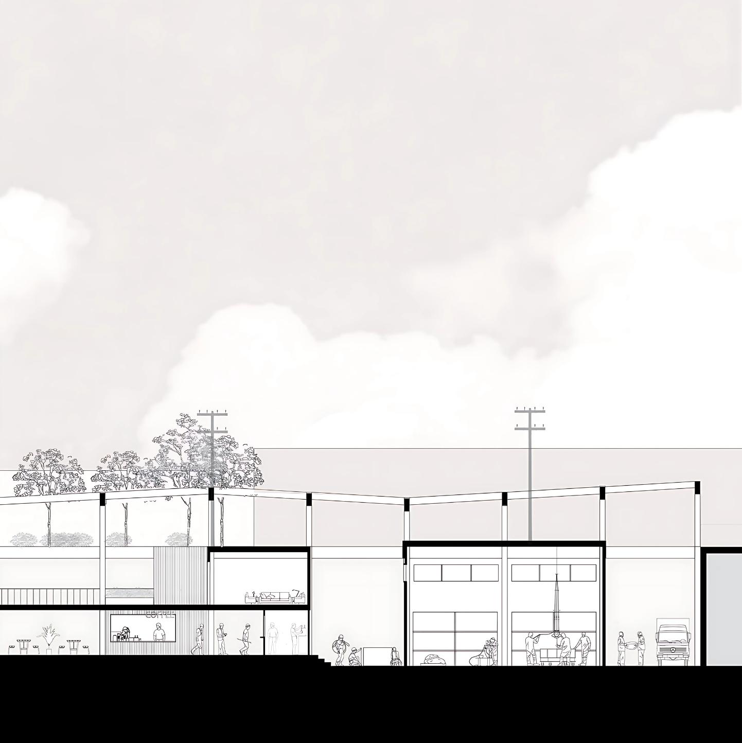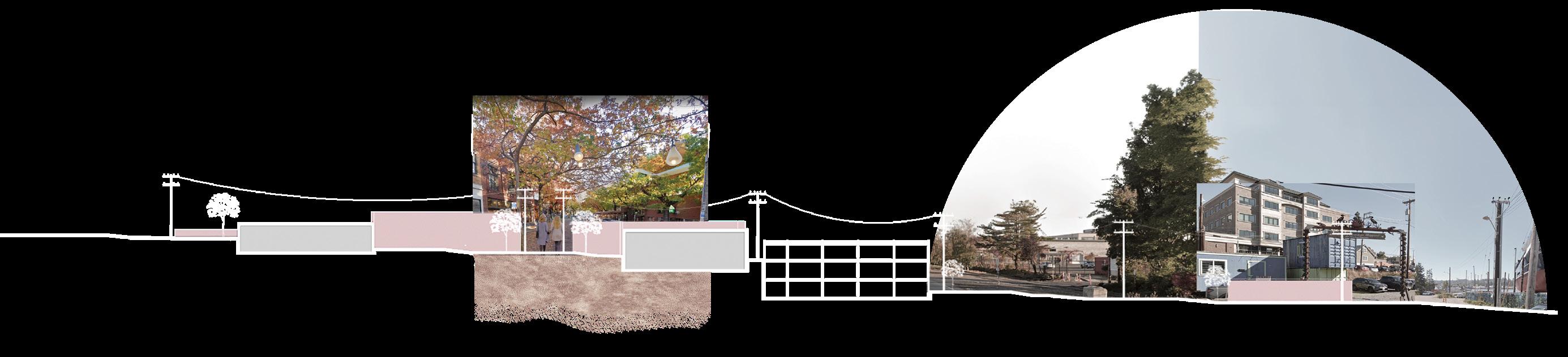 The Plaza reactivates a former City Light Substation into a community-oriented arts, gathering, and live/work space. Organized around a central plaza, the project uses spatial hierarchy to mediate between public and private programs. Rather than imposing a new identity, the intervention amplifies the site’s infrastructural legacy and its significance in Magnolia, framing adaptive reuse as a social practice that not only conmemorate but also transformative for collective life.