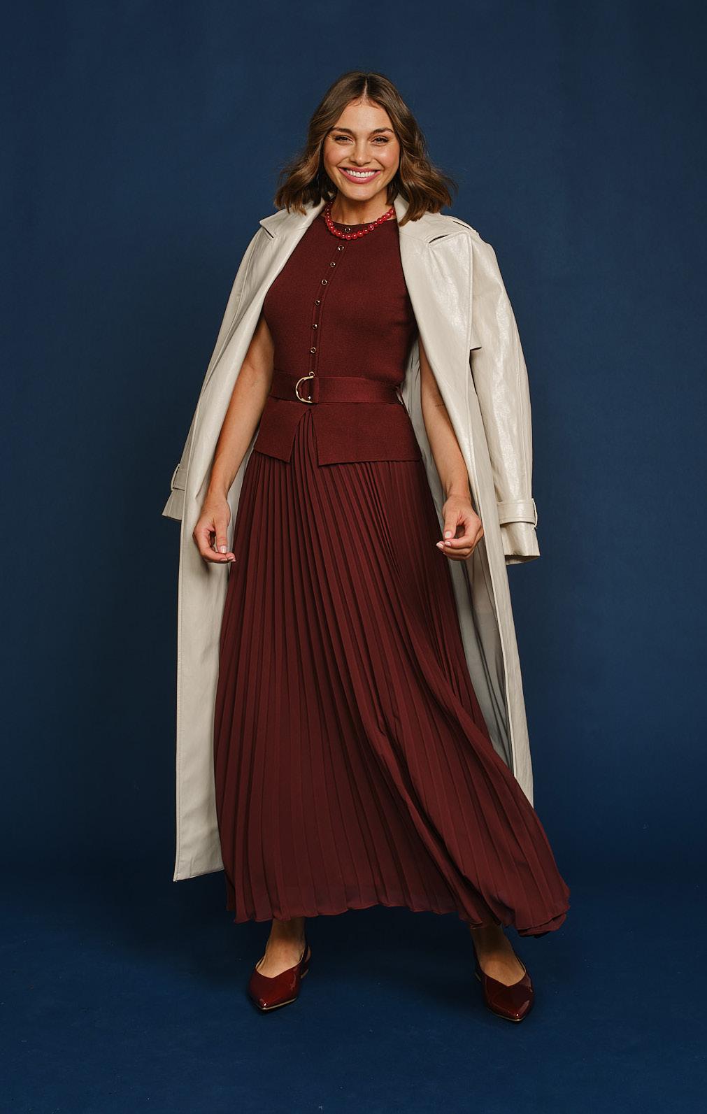 Kookai Trench $380, Forever New Dress $199.99, Spendless Shoes Shoes $40, Sussan Necklace $29.95