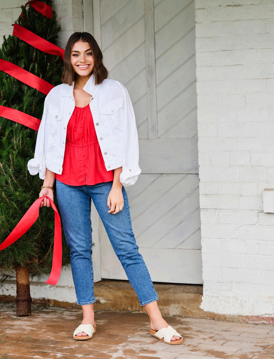 6 Christmas Gift Guide 22 1 Just Jeans Jacket $139.95, Just Jeans Jeans $129.95, Jeanswest Top $59.99, Williams Shoes $159.95, Evans Jewellers Bracelet $129, Evans Jewellers Necklace $99 2 Open Secret Vest $79, Sussan Shorts $69.95, Famous Footwear Shoes $59.99, 3 Forcast Top $49.99, Forcast Skirt $69.99, Famous Footwear Shoes $59.99, Billini Earrings $49.95 4 Open Secret Dress $89, Spendless Shoes Shoes $60, Swarovski Earrings $380 1 2 3 4