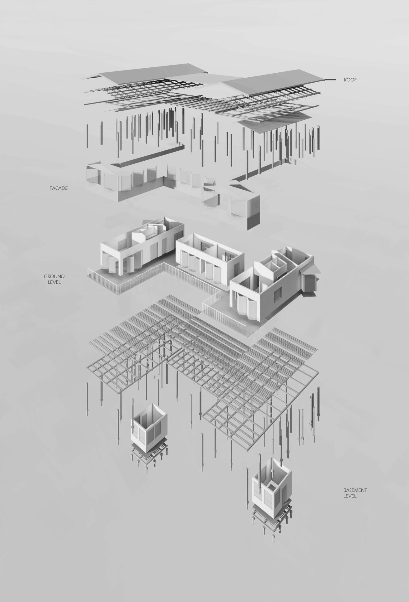 The design concept of the Negev Cultural Centre is centered around connectivity, adaptability, and sustainability. The centre is envisioned as an integrated space where key functional zone such as the school, gallery, offices, and community spaces - are interconnected, fostering interaction among diverse groups. This interconnectedness encourages collaboration and enhances the sense of community within the facility. The architecture draws inspiration from traditional Bedouin settlements, using modularity and flexibility to create adaptable spaces.