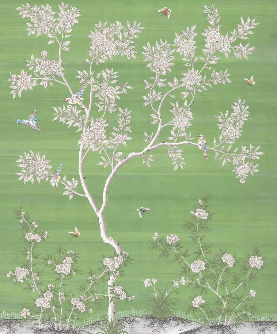 “We had to curate something completely original.” Gracie says. The signature product of Gracie Studio, a fourth-generation design studio with presences in New York, Atlanta, Dallas and Los Angeles, is hand-painted wallpaper—much of it in the chinoiserie style. The craft originated for export in China in the 1700s, and Gracie has had it produced there for their company since 1927.