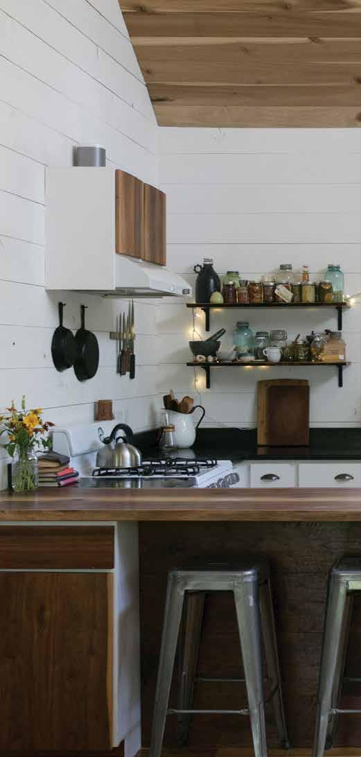 The home is a paragon of efficient space, and not simply for thrift’s sake. It starts with a broad covered porch laden with comfortable furniture. “We spend a lot of our time out here,” Sarah says, and it’s clear that every square foot is about practical use.