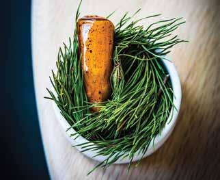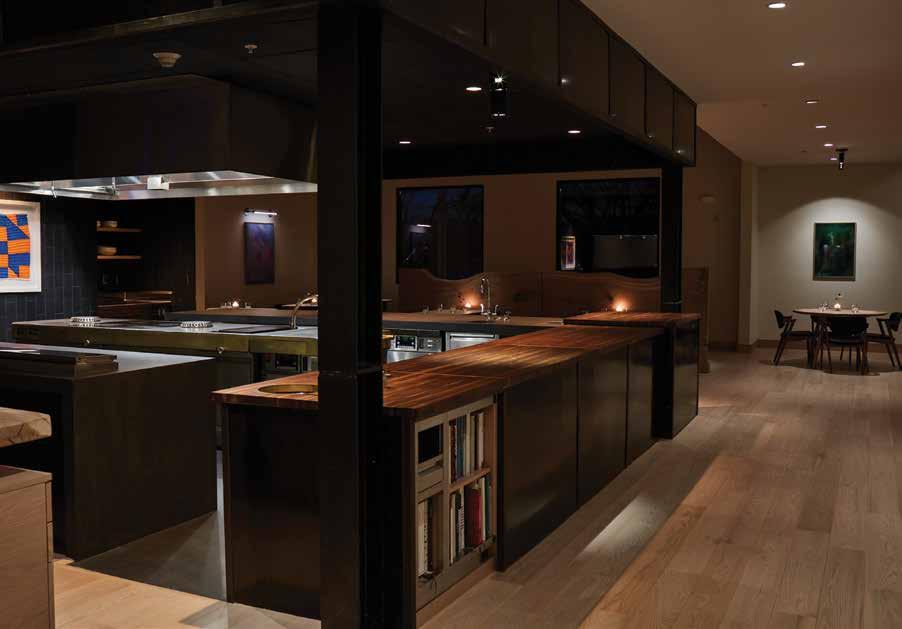 of the fathers of the American Craft movement. The airy combination of light wood tables, clean lines and impressive windows invites guests to experience a merging of cultures that are near to Brock’s heart. “The biggest inspiration for June is my two favorite places — Appalachia and Japan. The interior design is heavily influenced by the great George Nakashima. The architecture is a blend of Appalachian tobacco barns and modern Japanese architecture.” Craft played a prominent role in the development of the menu as well as the design of the restaurant, including a custom-built stove — designed by Chris Demant and inspired by Brock’s 1957 Leica camera.
