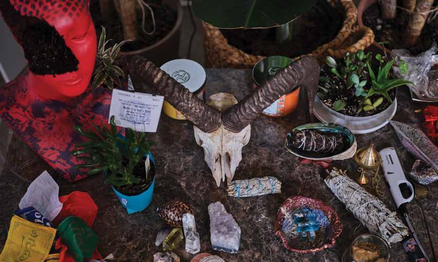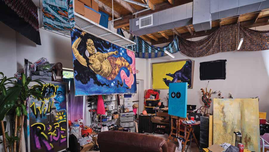 Mrozik’s studio is overflowing with her many avenues of artistic expression, from paintings to multimedia collections to crystals and smudge bundles.