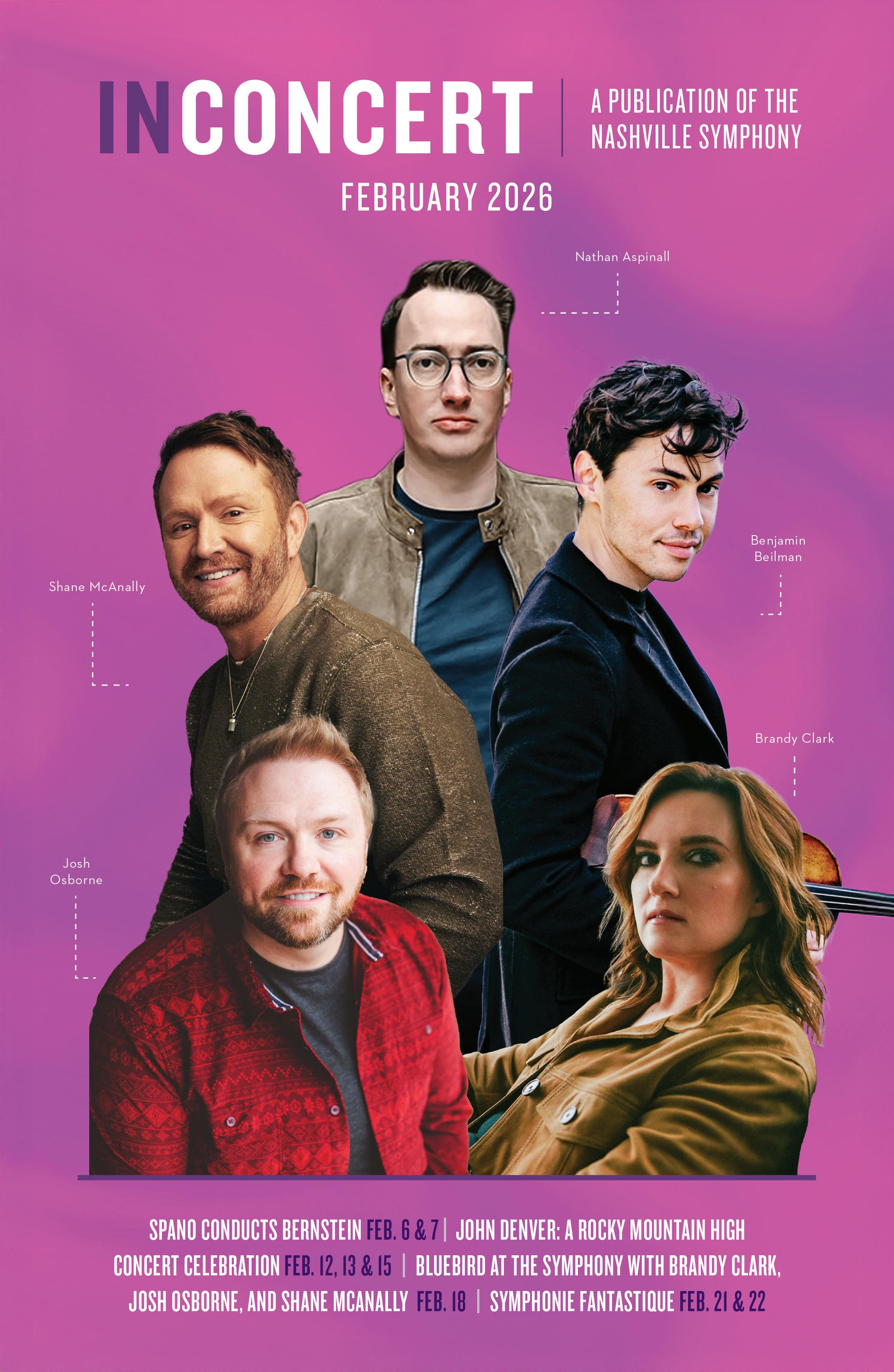 This month, in a full-circle moment, we welcome back Jonathan Leshnoff for performances and a recording of The Sacrifice of Isaac , his monumental new oratorio co-commissioned by your Nashville Symphony, conducted by Robert Spano and featuring the Nashville Symphony and Chorus . February also brings a dynamic mix of concerts that reflect the depth of our programming. We begin and end the month with Resident Conductor Nathan Aspinall . First in performances of the film Amadeus Live, followed later in the month by concerts featuring Berlioz’s Symphonie fantastique and works by Ligeti and Britten. We’ll miss Nathan’s artistry and energy, as this season marks his final season with us.