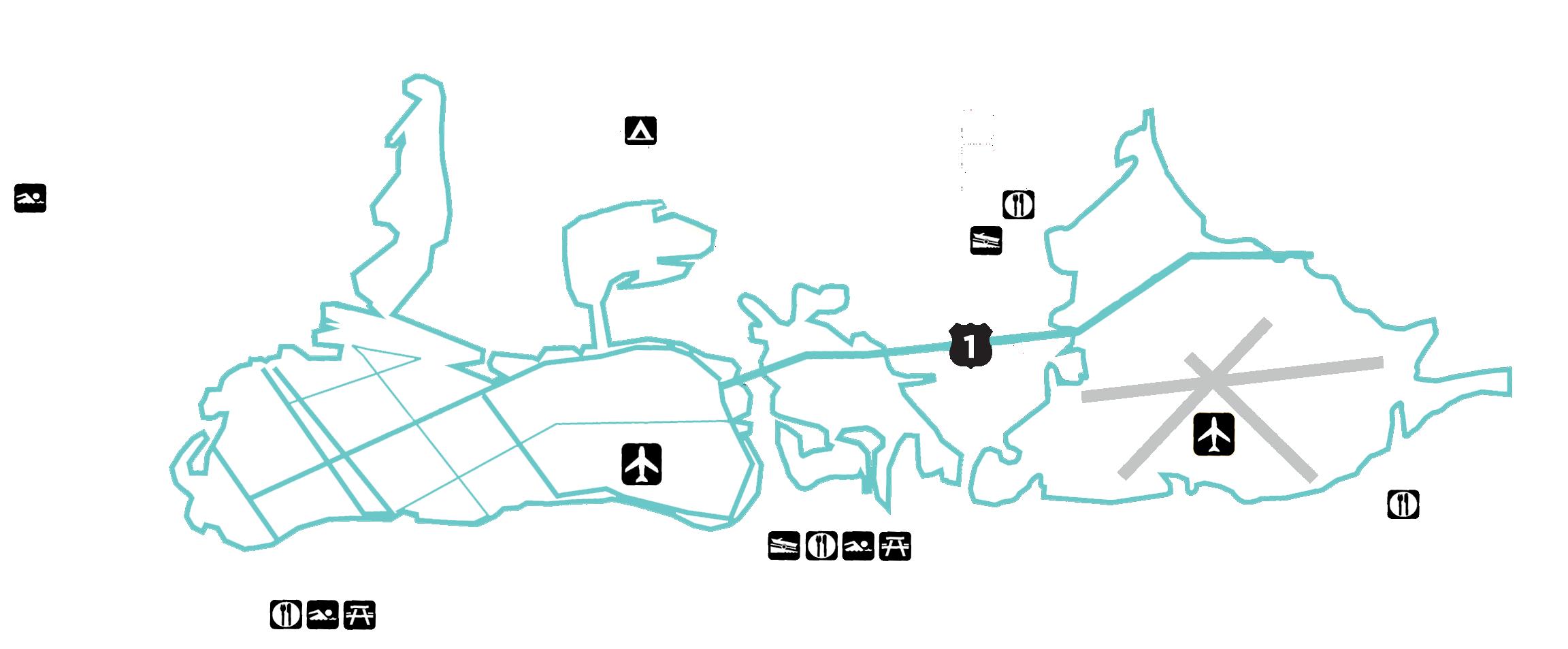 • To go to Navigator’s Bar, Fly Away Café, Marina and beach access, continue straight past the front gate Sentry. At the stop sign, turn right onto Midway Ave. for 1.5 miles.