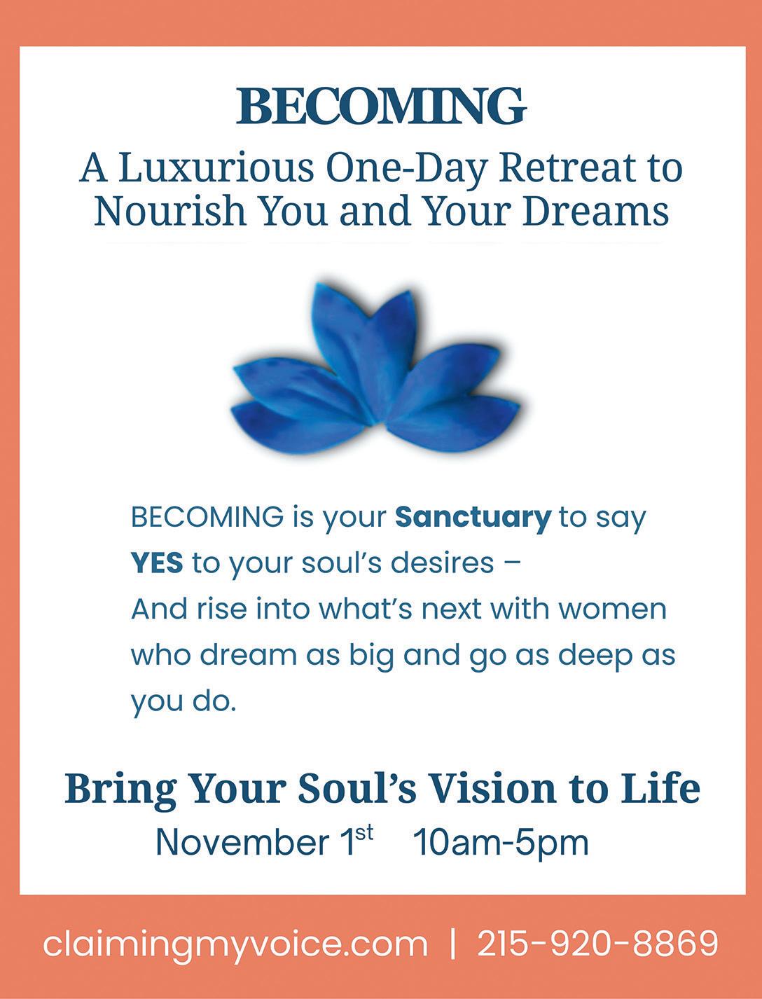 Divine Design-Create Your Own Angel Oracle Card With Kristy McAdams – 6:30-8pm. This workshop kicks off on Monday, September 29th, The Feast Day of Arch Angel Michael and of all the angels. Cost: $40. The Center for Living, 45 S. Main St. Medford. 609-975-8379 or Info@TheCenterForLiving.net.