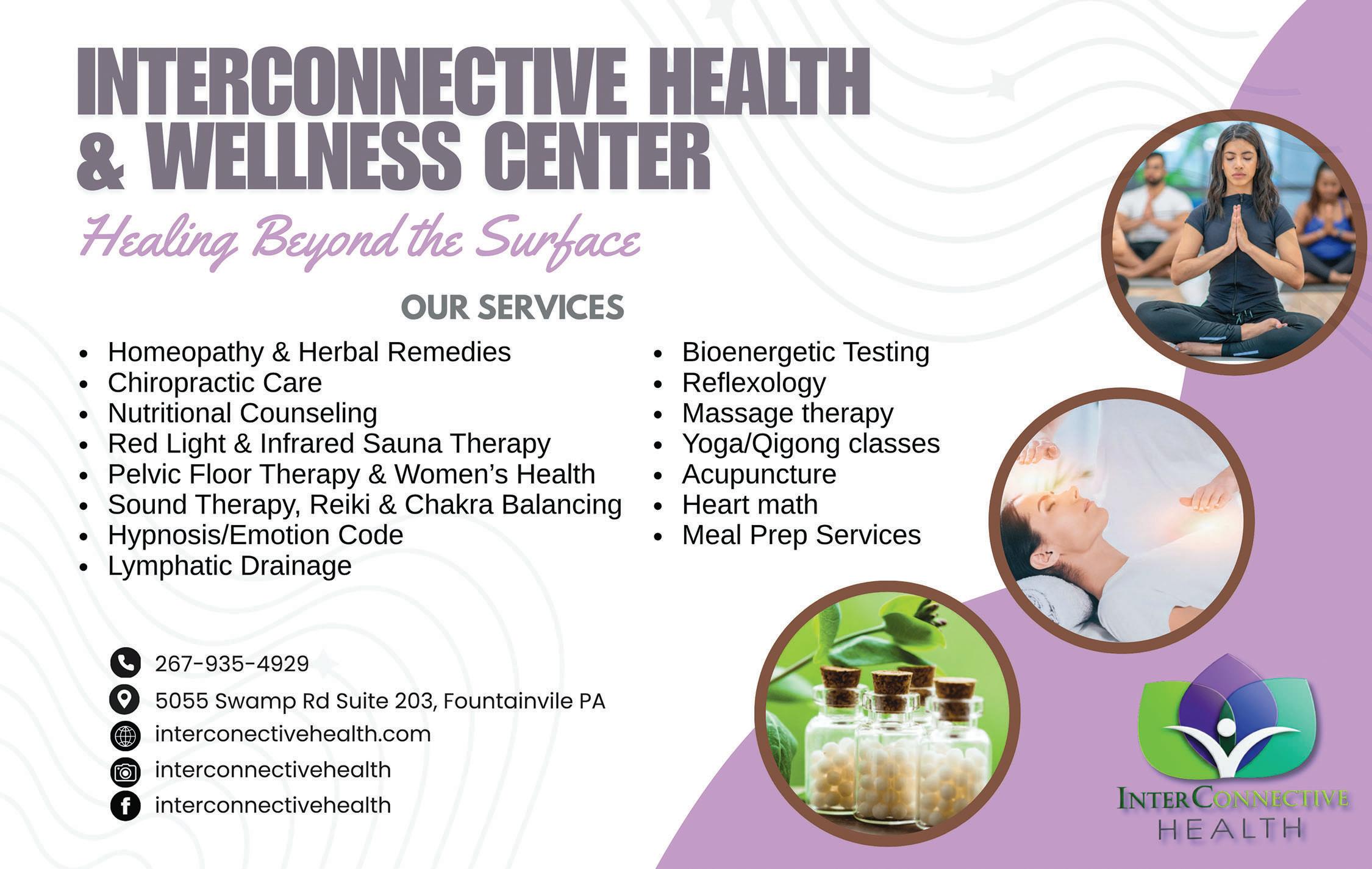 Interconnective Health is an integrative wellness center offering personalized care blending modern medicine with holistic therapies, supporting physical, emotional and energetic balance through root-cause healing and whole-person care.