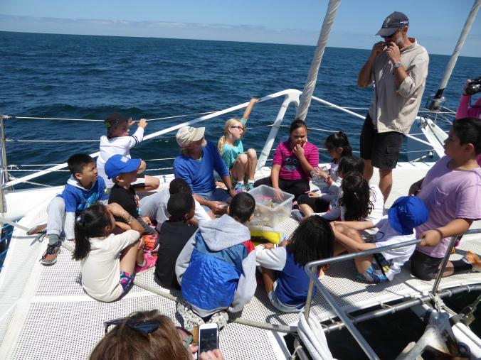 The kids all agreed that being out on the sea was a better place to learn about the sea than in the classroom. Some of the things the kids said included: “You see it in real life and in a class you just talk about it.” “On a boat you can see where the animals come from.” “In school you learn about the community, on the boat we learnt about the ocean and it’s creatures.” Well nearly all the kids agreed, one said “The boat is too bumpy, the classroom is always calm!”