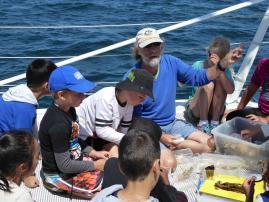 Harry, our on-board marine scientist enthralled the kids with his knowledge and passion for the sea and all that lives in it. He had an amazing collection of shells, eggs, and various sea life from our Port Phillip Bay, that the kids could touch.