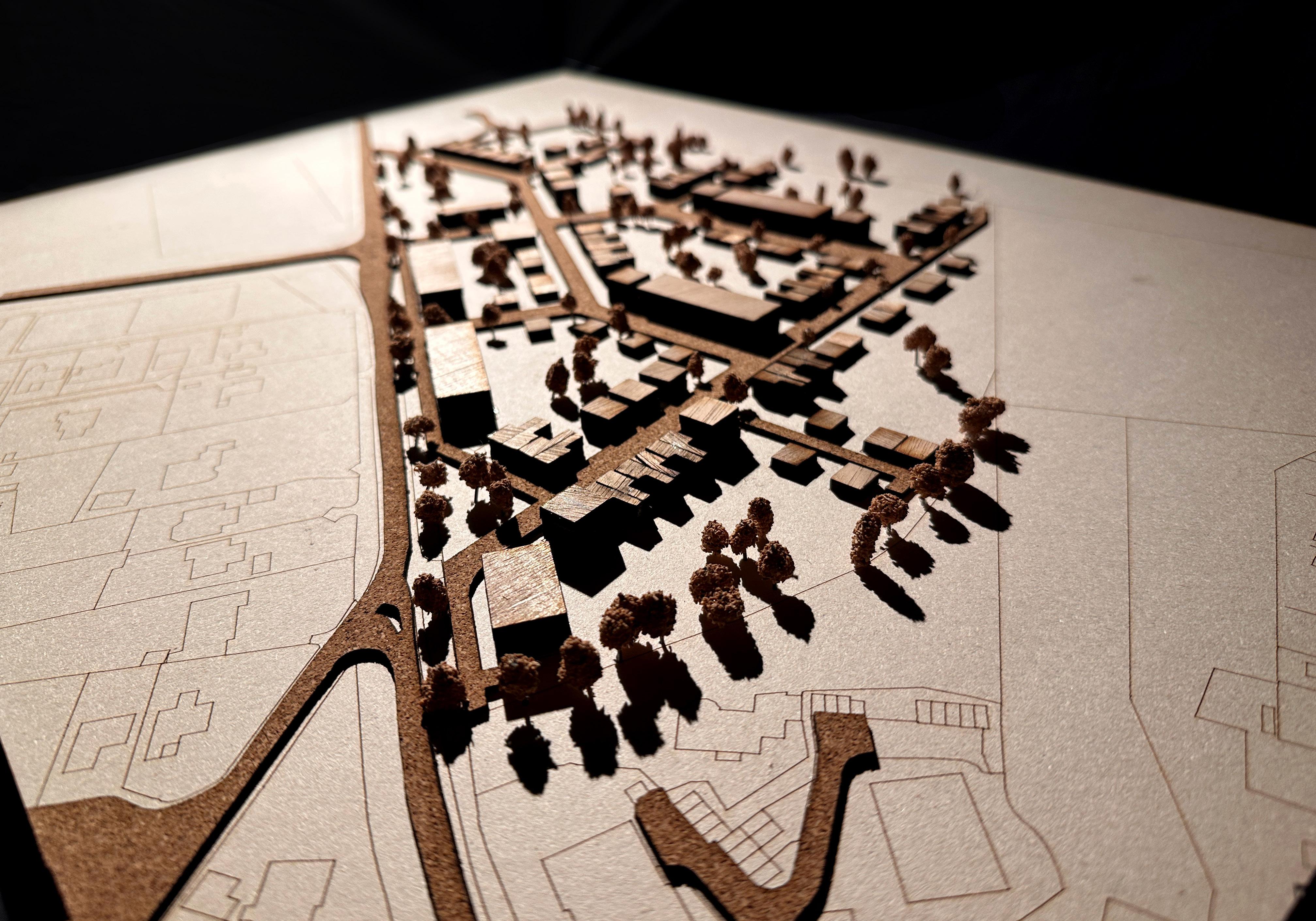 As a group of three, we designed a housing scheme in Claverton down, Bath, with density 45% DPH (NDA), approx. 200 dwellings. Each block has a mix of house types: apartments, terraces, bungalows and semi-detached. Every house has a private garden and access to a shared courtyard within their block. Through this shared courtyard, we wanted to create communities within a community.
