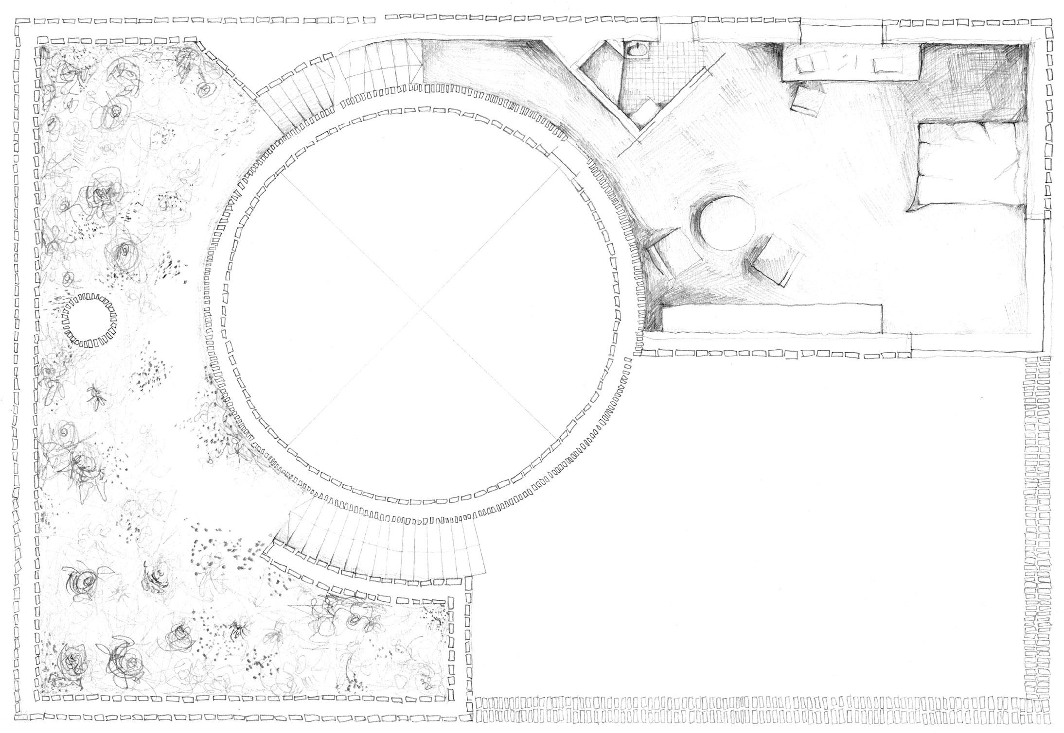 The drum is a multi use space for cooking, eating, hosting and living. Internal and external stairs wrap around the drum to emphasize its importance. External staircases lead to intensive green roofs for planting herbs and greens that may be used during baking or cooking.
