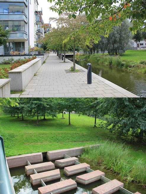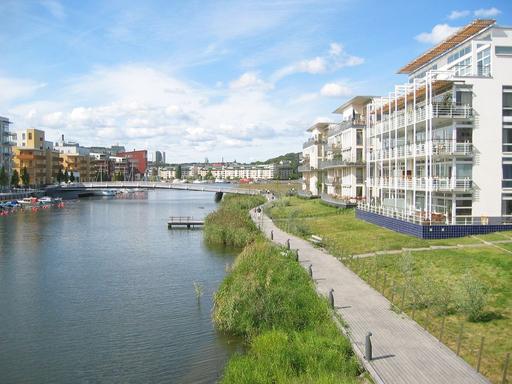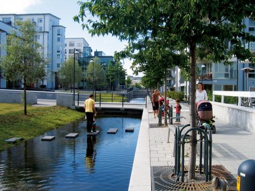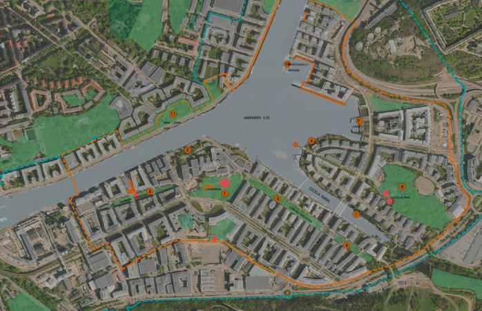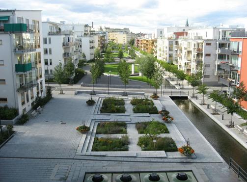 Una de las características más importantes en cuanto a la gestión del eco barrio es la planificación, que toma de referente el centro de la ciudad del siglo 19 de Estocolmo Por esta razón, los edificios están orientados hacia los canales y el mar, lo cual permite que las viviendas tengan acceso y una visual hacia el agua.