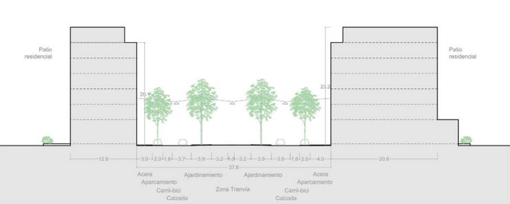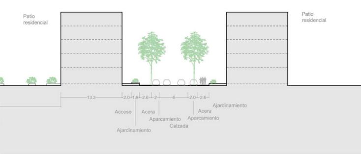 Losedificiosnosobrepasanlasseisplantasyseintenta conseguir un barrio denso y compacto para mantener la vidaurbanacercaalosequipamientos